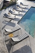Venkovní relaxační lehátka Breeze Relax. Kolekce je vyrobena z lakovaného kovu a umělého ratanu. Breeze je dostupná také jako jídelní nábytek