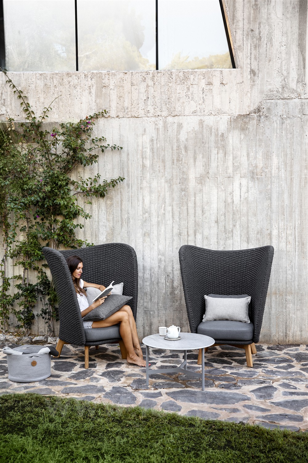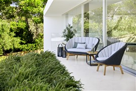 Peacock Lounge is a beloved collection of outdoor armchairs and sofas distinguished by refined rope weaving. We recommend pairing it with the dining furniture from