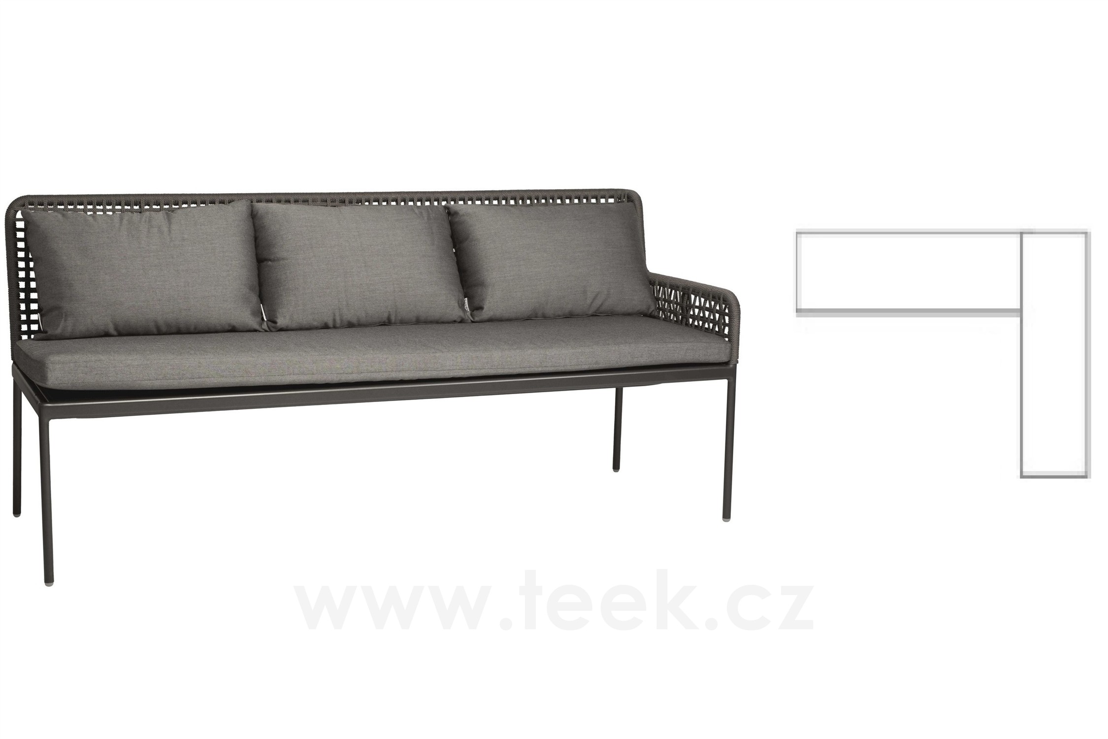 Jídelní rohová 2-dílná lavice pravostranná Greta, Stern, 197x252x86 cm, rám lakovaný hliník šedočerný (anthracite), lankový výplet šedý (platin), 100% akryl šedá (silk grey)