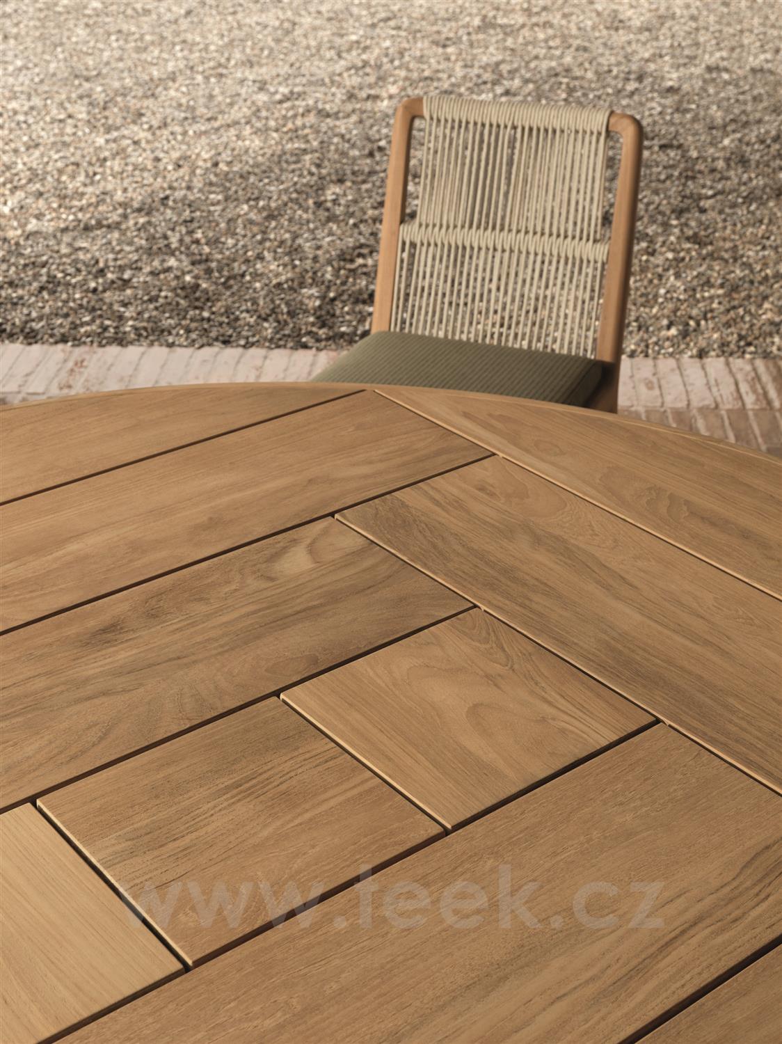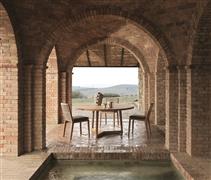 Fairmount stůl, navržený Vincentem Van Duysenem pro Molteni&C, je vyroben z masivního teaku a představuje vrchol venkovní elegance. Díky rafinované konstrukci působí deska jako „vznášející se“ a je dostupná ve dvou tvarech – obdélníkovém s dvojitou základnou a kulatém s centrální Y-bází. Spojuje luxusní materiál, mistrovské řemeslo a harmonický design inspirovaný kolekcí Landmark.
