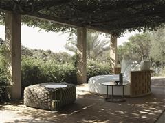 Pohodlný taburet/puf ve dvou velikostech s ručně tkanou texturou.