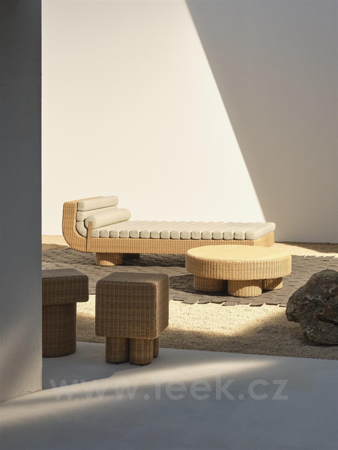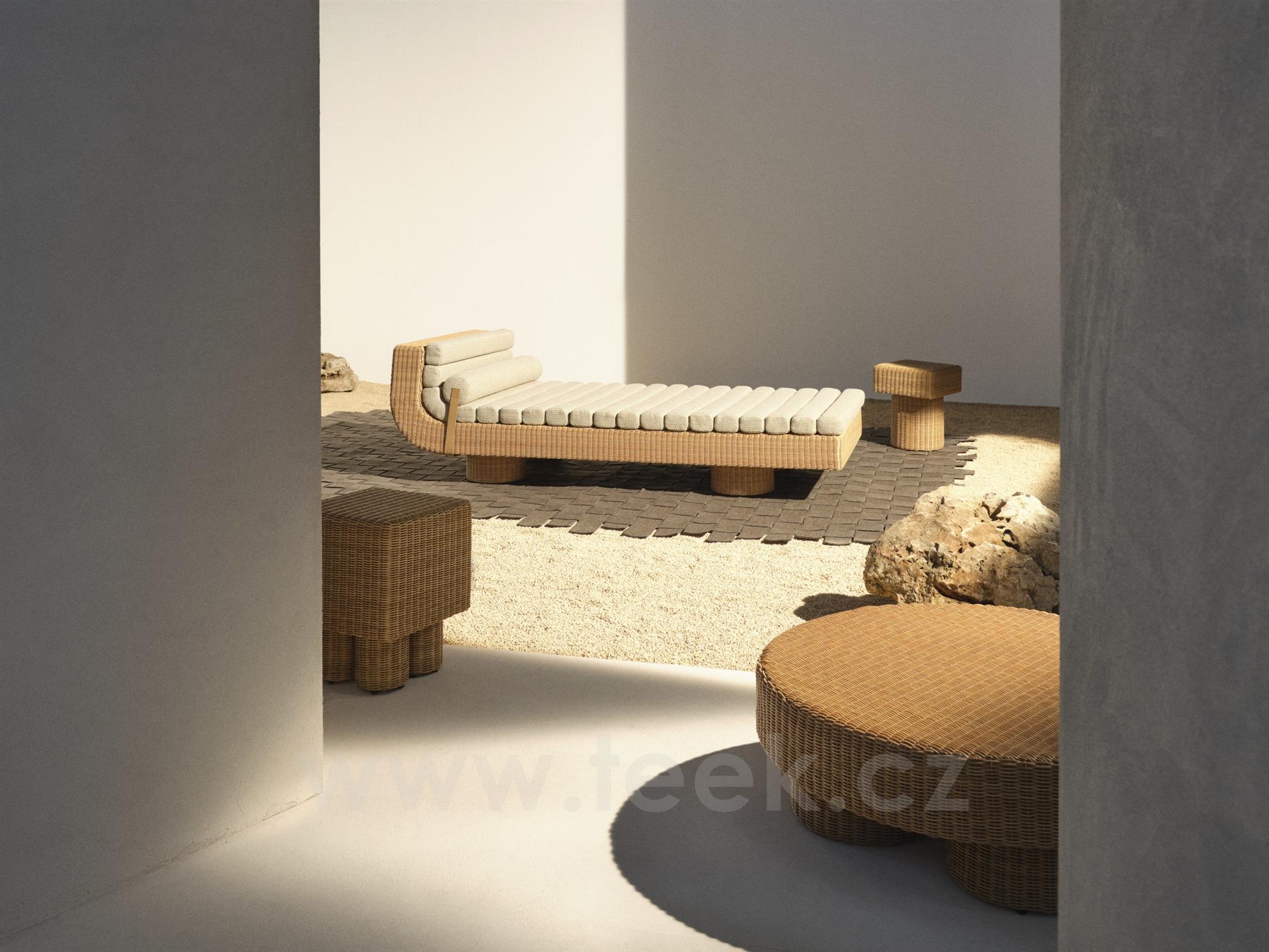 Pantalica daybed od Elisy Ossino propojuje plynulé křivky s elegantní linií a přináší sochařskou formu do venkovních lounge prostor. Kolekce inspirovaná středomořskou tradicí nese jméno po slavném sicilském nalezišti Pantalica, zapsaném na seznamu UNESCO.