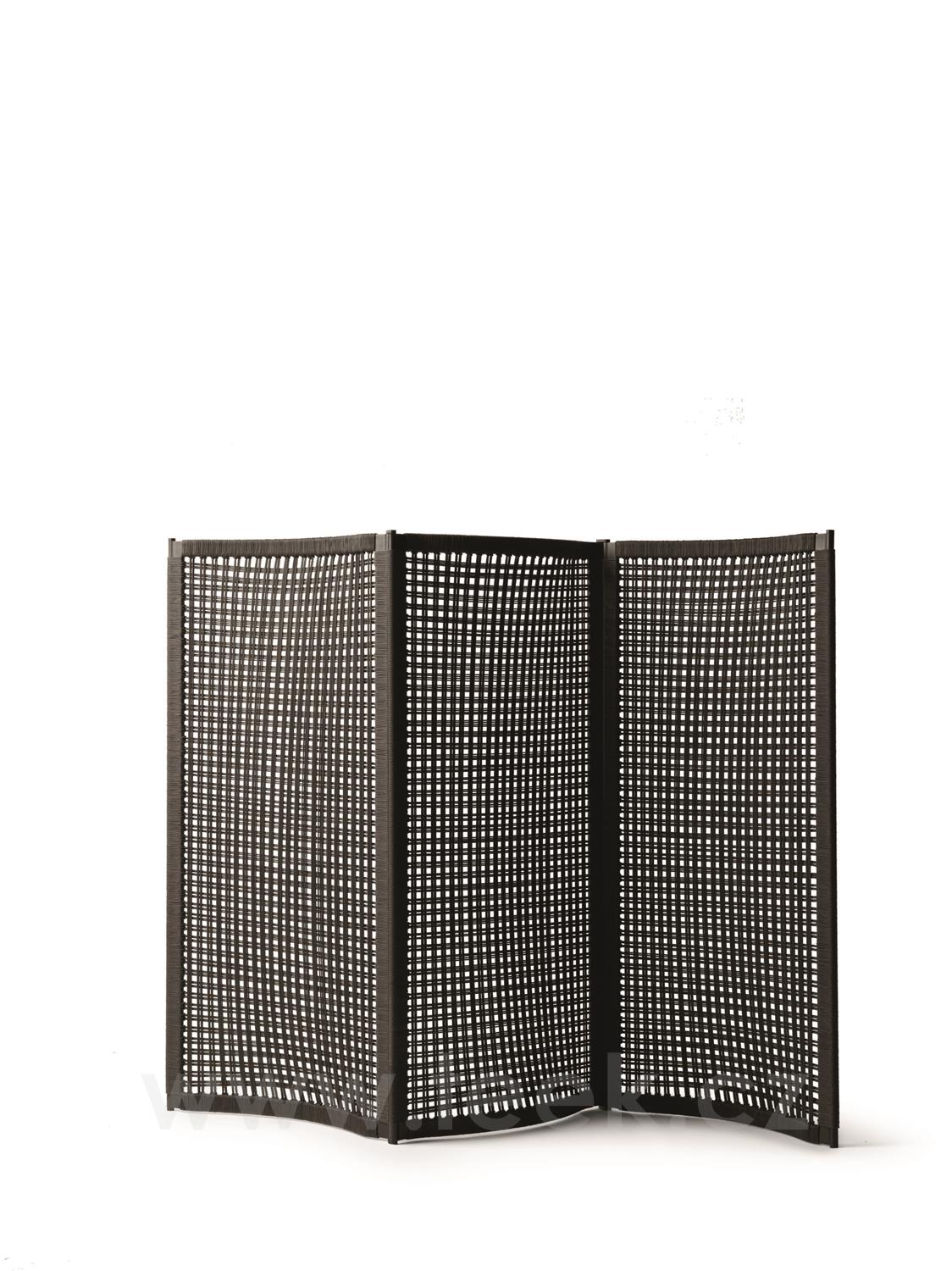 Elegantní paraván s rámem z patinovaného kovu a ručně tkaným polypropylenovým lankem v barvě antracit.