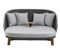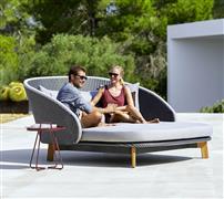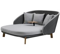 Sleva 35% - Denní postel Peacock, Cane-line, 219x199x97 cm, nohy teak, rám hliník, výplet umělý ratan barva grey/light grey, polstry venkovní látka Natté light grey, vystavený vzorek