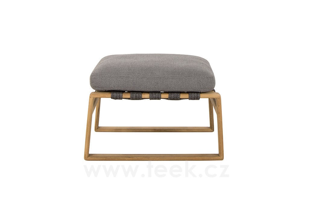 Endless Soft Footstool, Cane-line, 63x56x41 cm, teak frame, rope weave color dark grey, seat outdoor fabric AirTouch grey