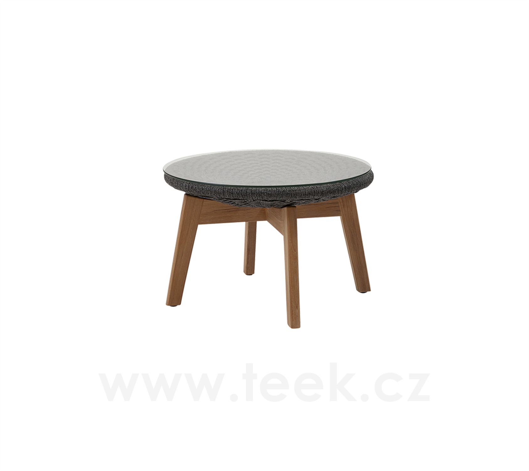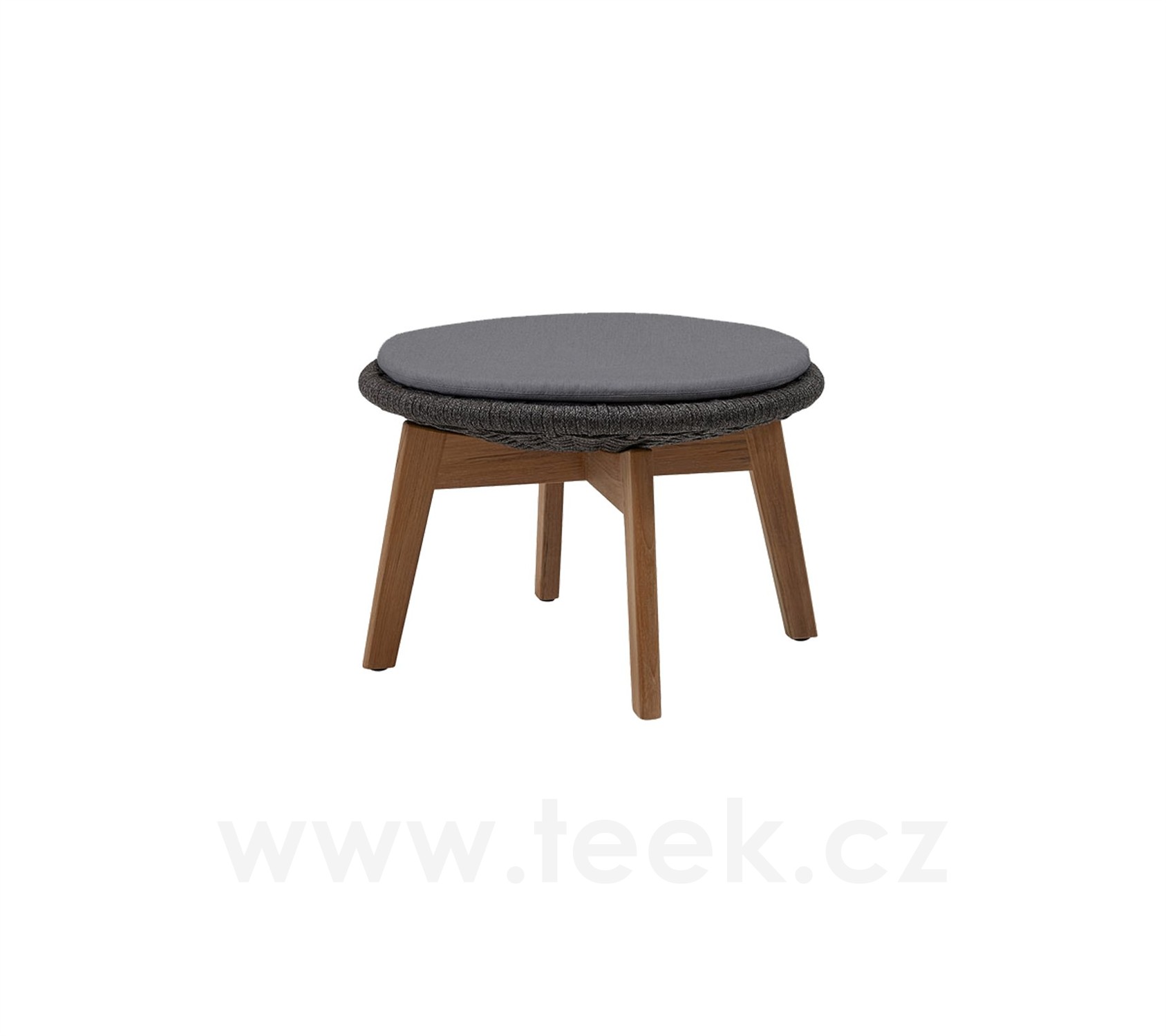 Podnožka Peacock, Cane-line, kulatá 60x40 cm, nohy teak, výplet lanko Soft Rope dark grey
