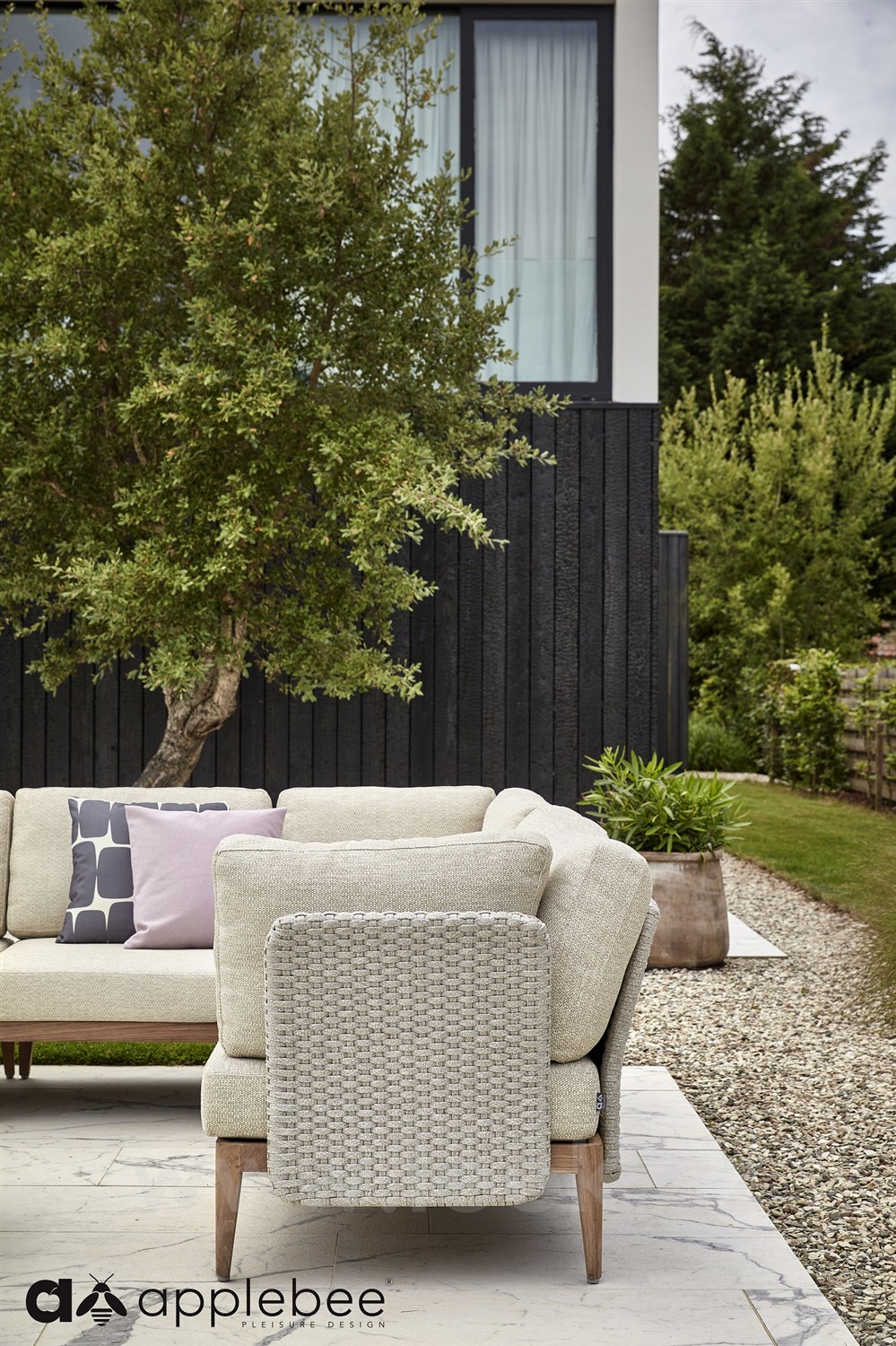 Rohový díl Lisa, Apple Bee, teak, lankový výplet, venkovní látka