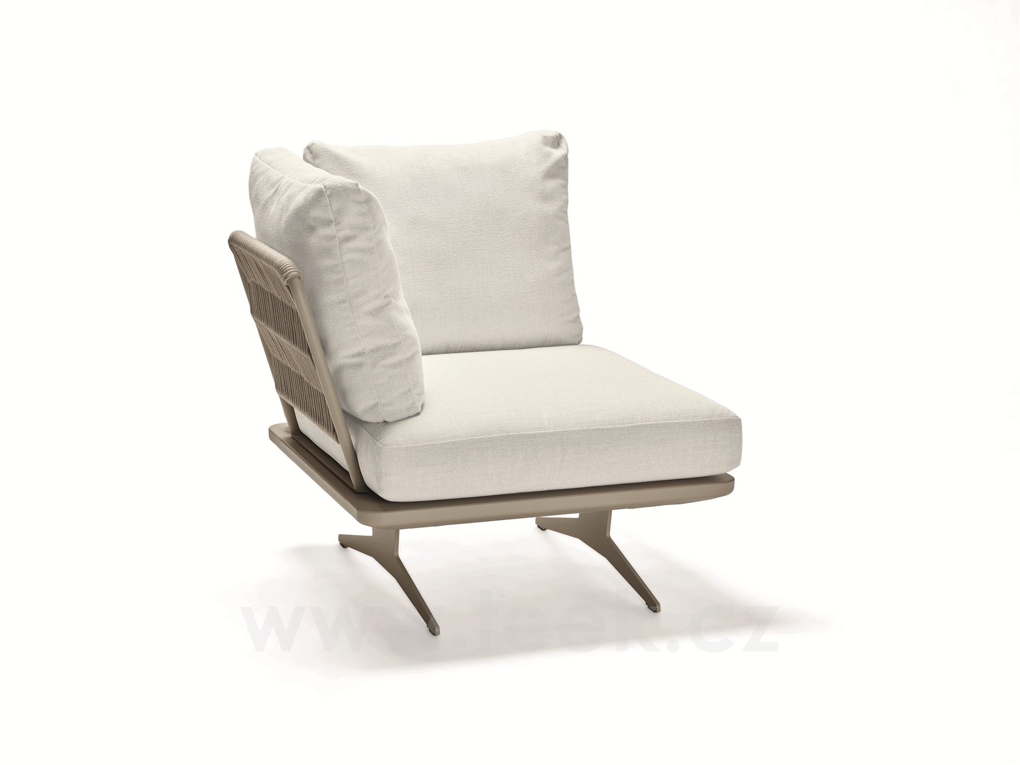 Rohový díl 1-místný Enya 95x95x85 cm, Stern, rám hliník barva Greige, vč. zádových opěrek s lankem Greige (2ks), sedák a polštáře (2ks) potah Ivory (100% akryl)