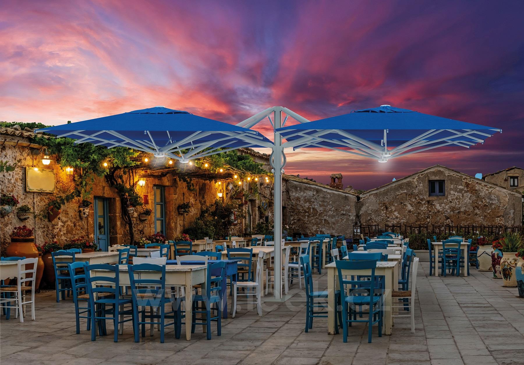 Slunečník Quattro italské značky Scolaro je masivní slunečník s pevnou konstrukcí.