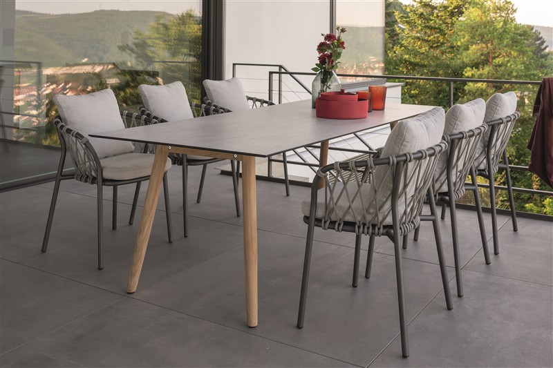Vzdušná pohodlná zahradní jídelní křesla na terasu nebo na zahradu. Doporučujeme kombinovat s kolekcí Klea Lounge .