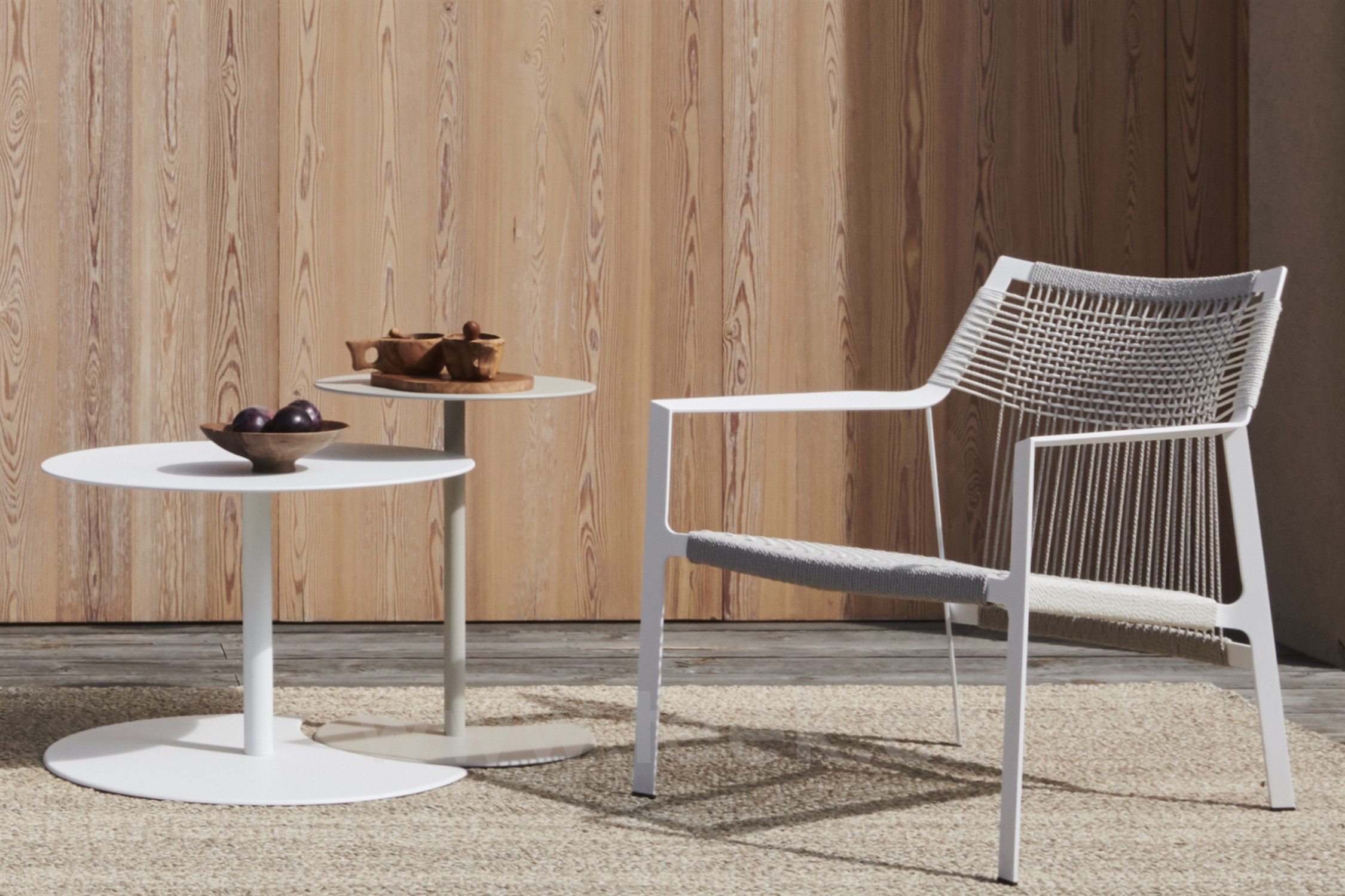Designové oblíbené odkládací stolky Drops značky Tribu s praktickými výškově volitelnými alternativami v balení.