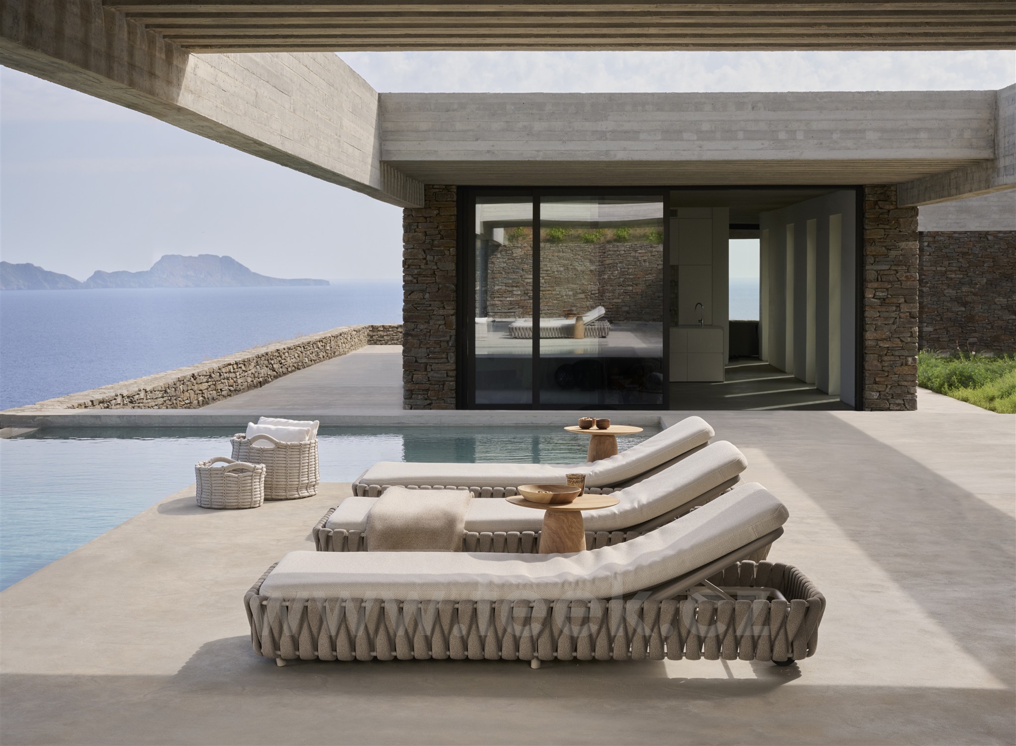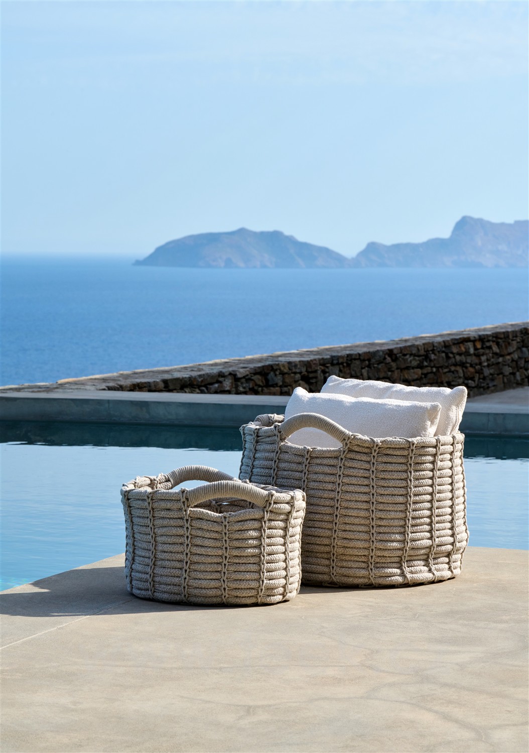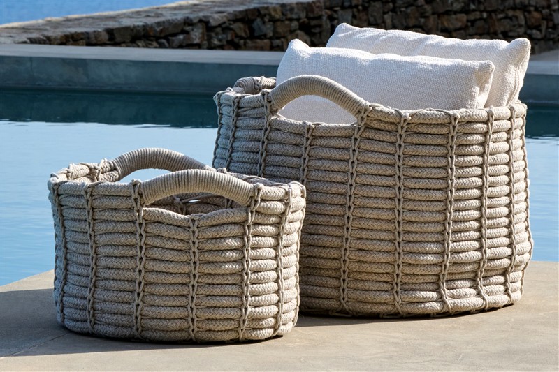 Venkovní koš Gobi značky Tribu. Koš je vyrobený z recyklovaného lankového výpletu.
