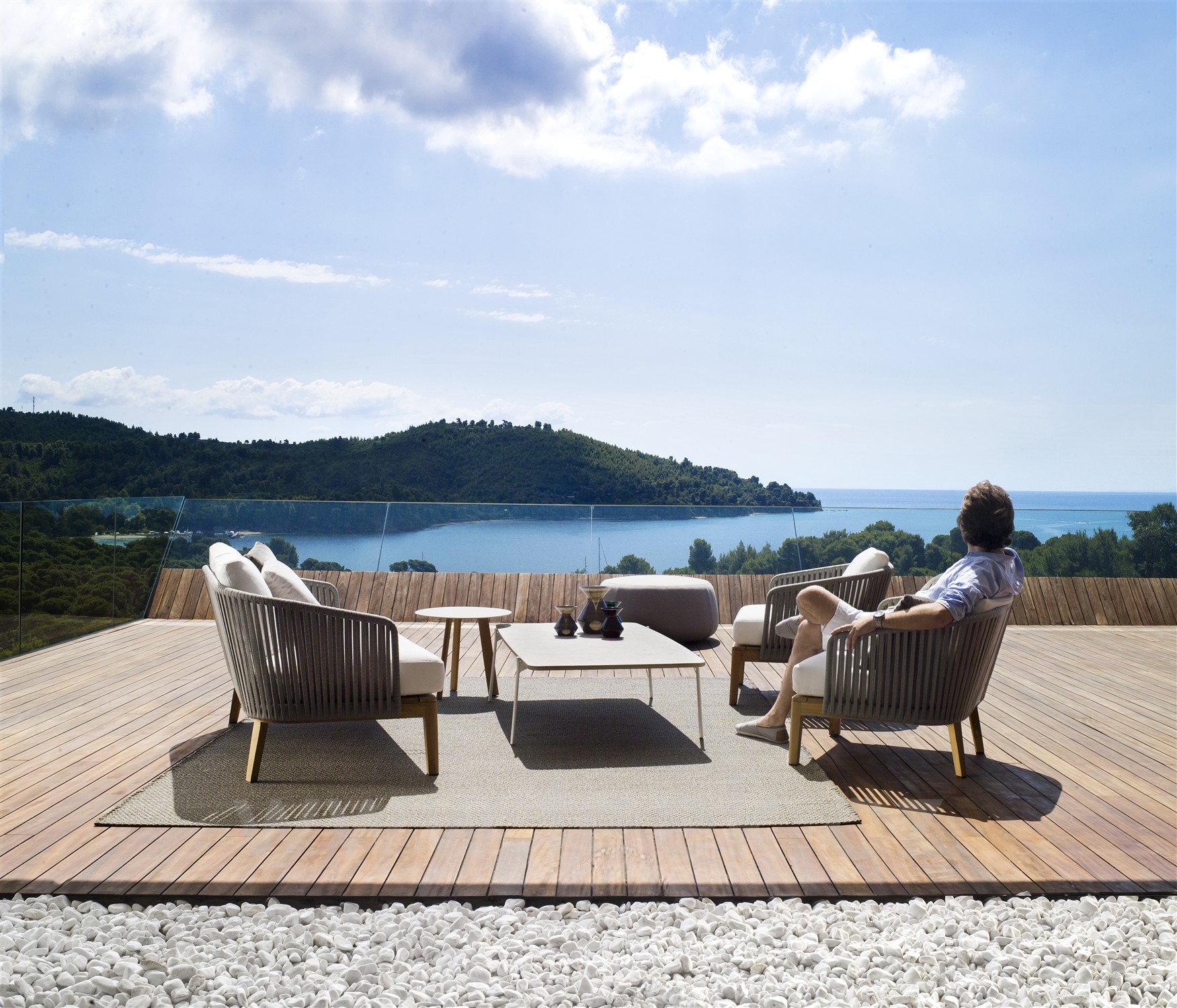 Originální oblíbená Tribú lounge kolekce z teakového dřeva a lankového výpletu.