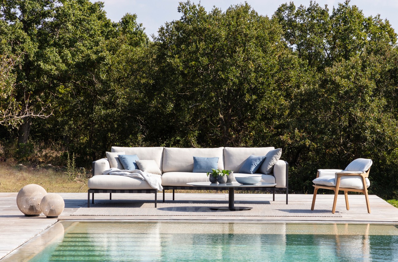 Nadčasová modulární venkovní sedací sestava od Tribú. Natal Alu Sofa má odolný hliníkový rám a venkovní potahy. K dispozici v libovolné konfiguraci dle Vaší preference.