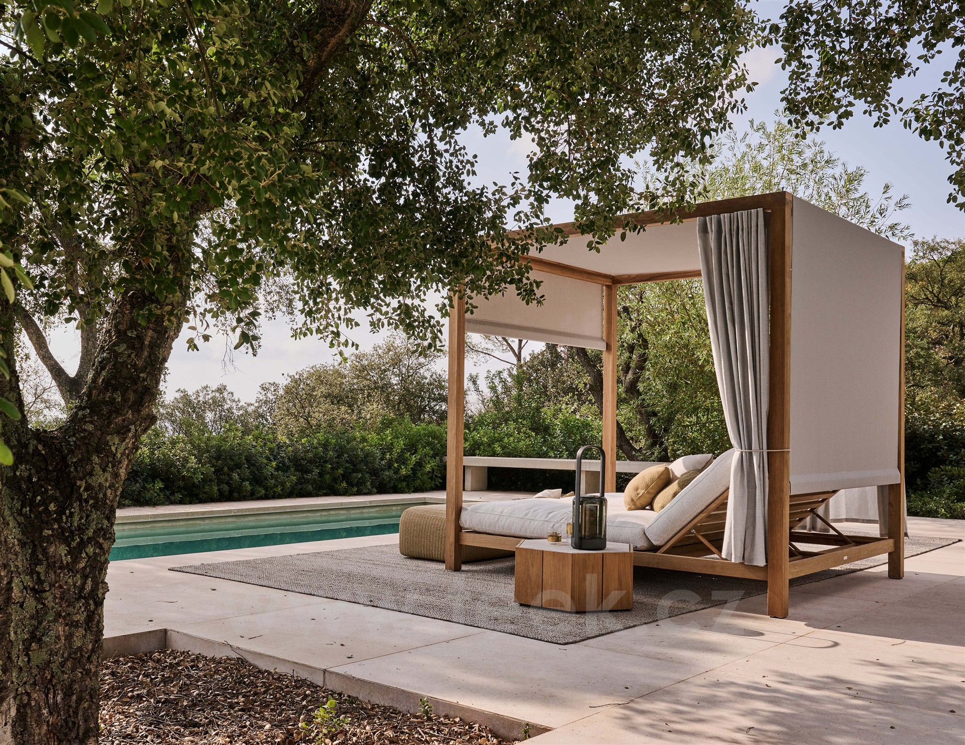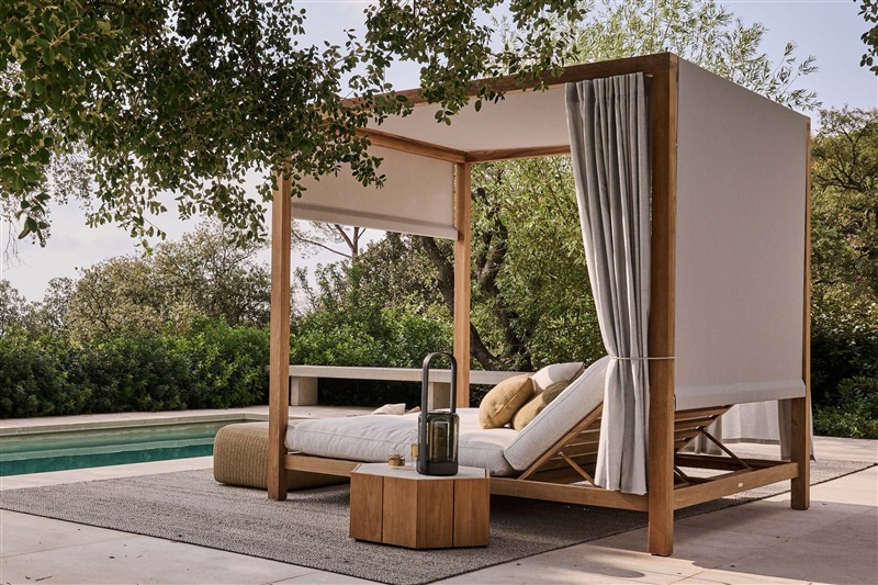 Luxusní venkovní teaková postel od Tribú.