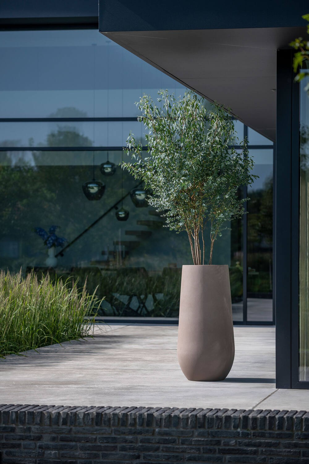 Venkovní květináč kulatý Nax L, Taupe (barva béžová taupe), kolekce Natural, kompozit Fiberstone, průměr 50 cm x v 100 cm, objem cca 158 l