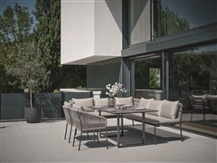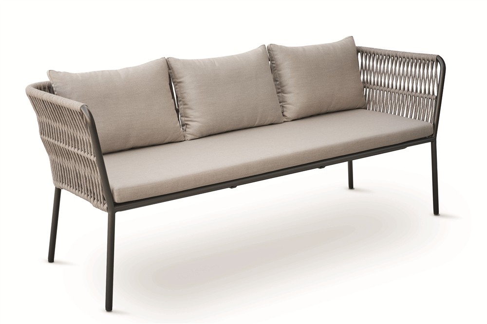 Jídelní lavice bez područek Marla, Stern, 180x73x86 cm, rám hliník antracite, výplet lanko Salt, sedáky 100% akryl Grey Brown
