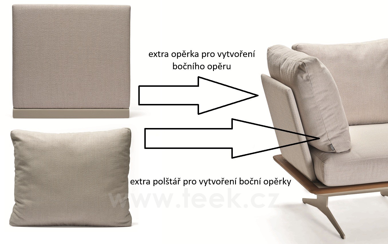 - K dílu lze přikoupit extra boční opěrku a tu upevnit na krátkou stranu/strany a tím vytvořit boční opěrky. (nutno dokoupit jak opěrku, tak i extra polštář).