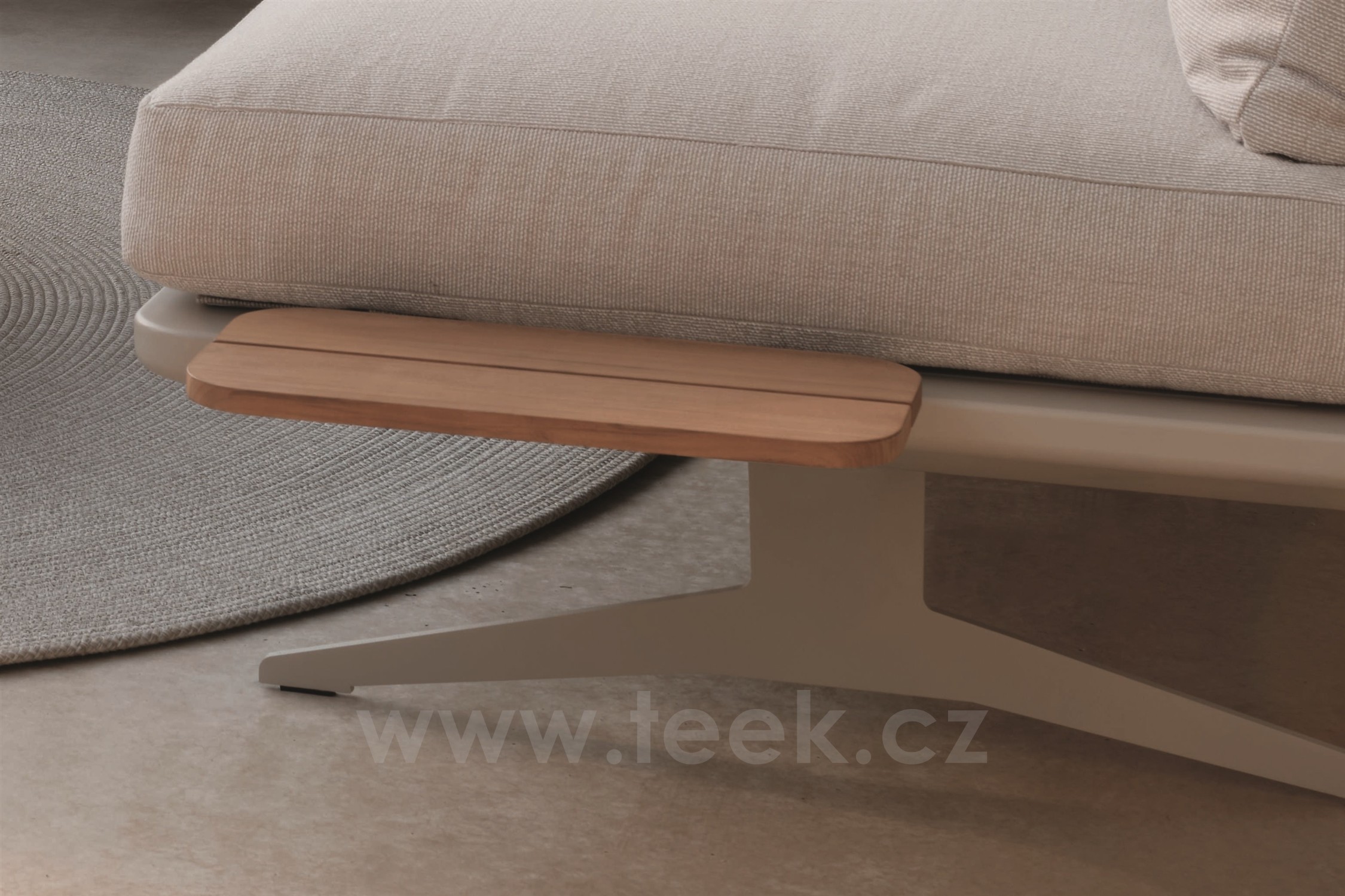 - K dílu lze přikoupit nasazovací přídavný teakový stoleček a upevnit ho na rám.