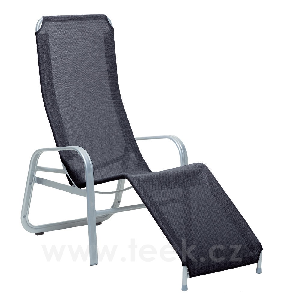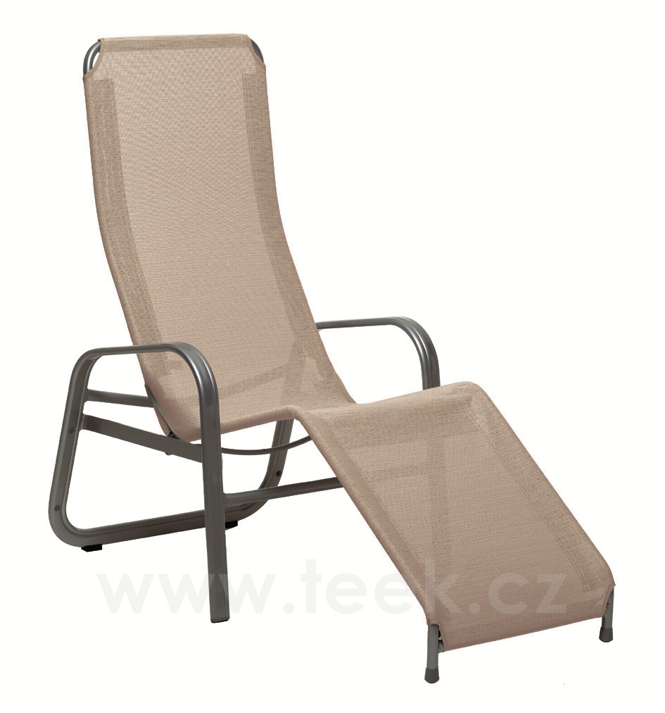 Rám je z lakovaného hliníku, díky tomu je nábytek velmi odolný vůči počasí. Výplet zahradního lehátka ze značkového textilenu (Karatex), který rychle schne, je