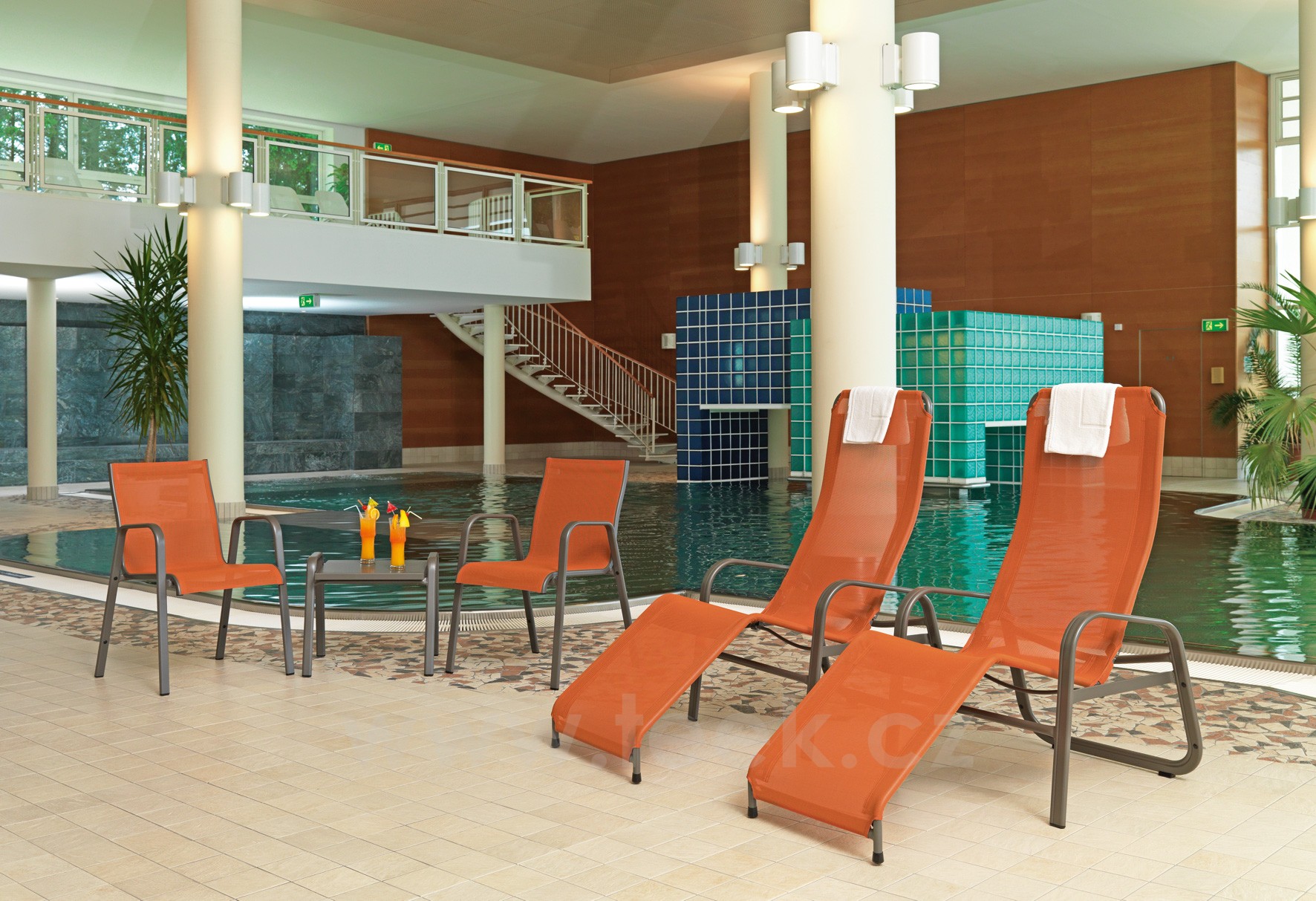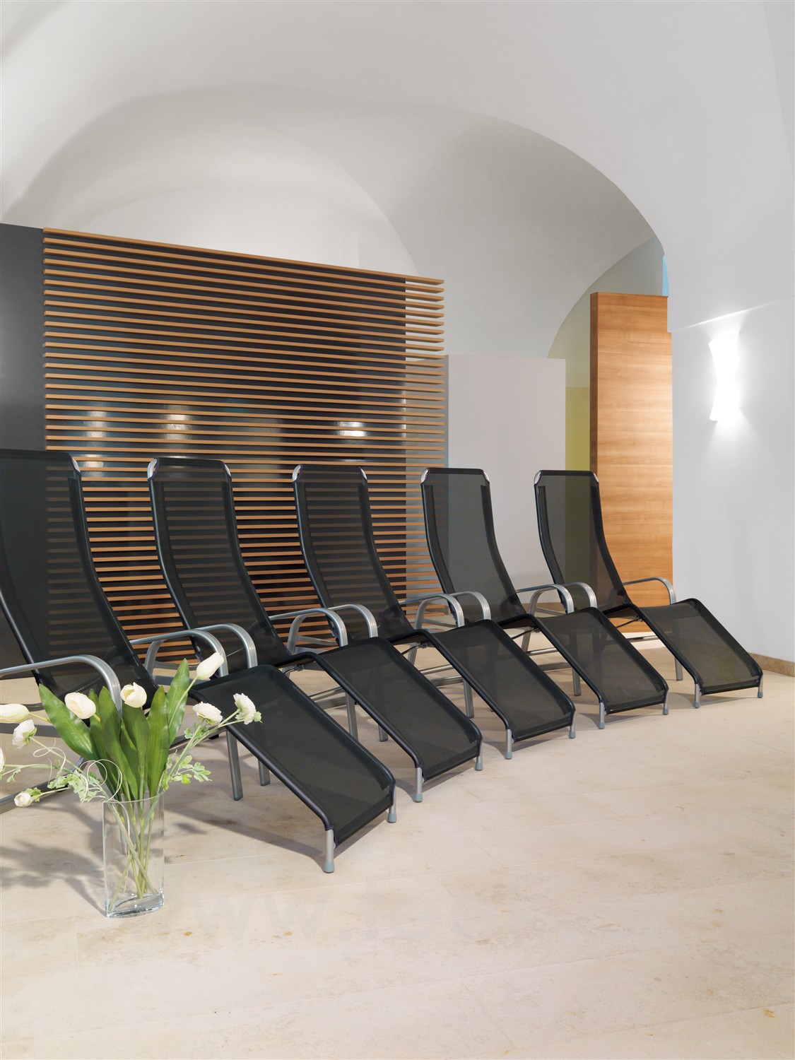 Zahradní wellness sklopné lehátko lze použít také v zátěžovém provozu - wellness, hotelů apod.