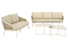 2- místná pohovka Pine Key, Apple Bee, 145x83,5x79 cm, rám hliník Oyster, výplet umělý ratan Seashell, sedáky venkovní látka Cotton Flower