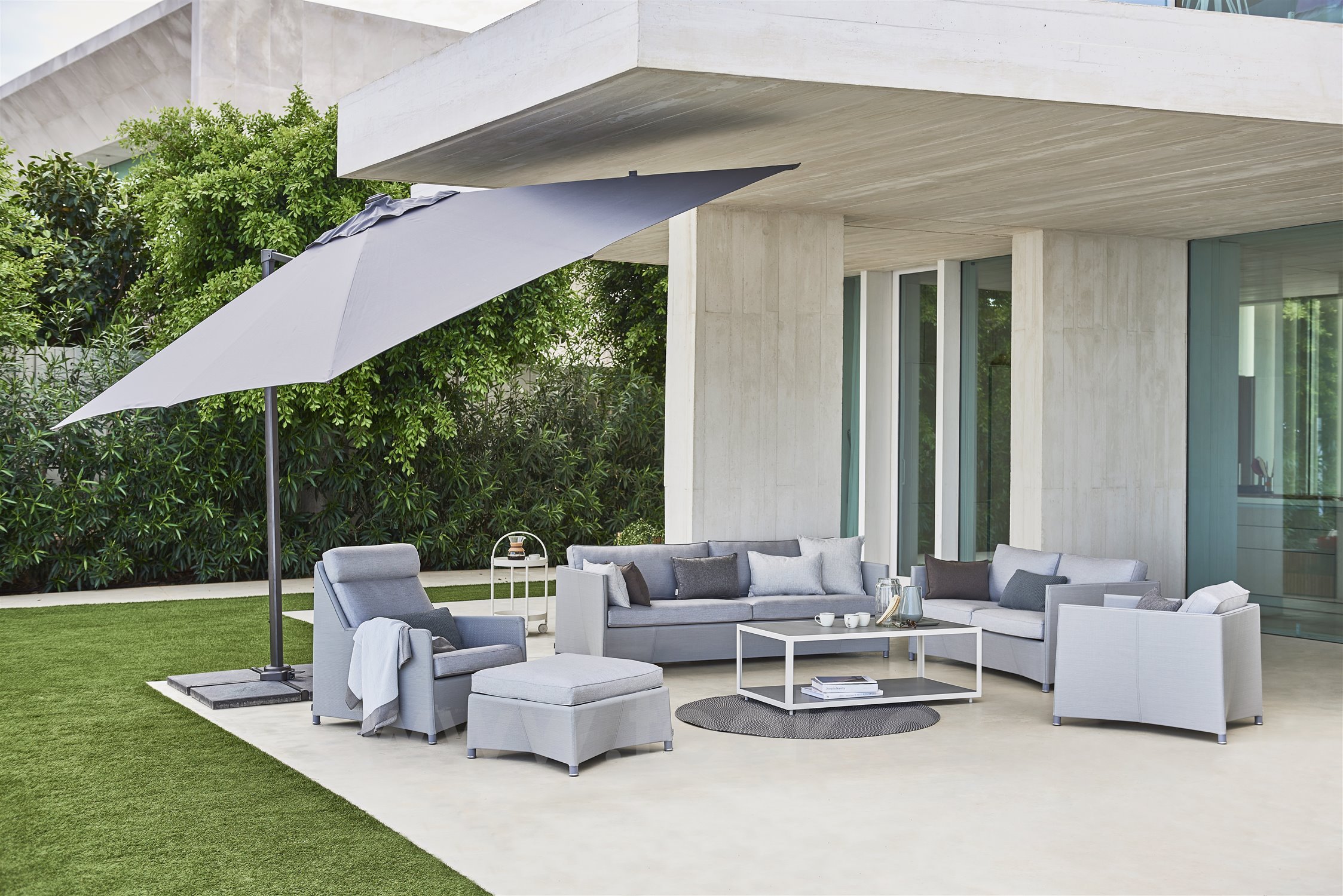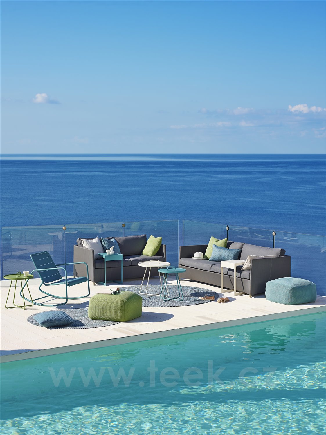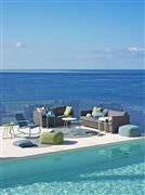 Konstrukce pohovky je z hliníku. Výplet je z textilenu (Cane-line Tex). Sedáky a polštáře Sunbrella, výplň rychleschnoucí pěna. V několika barevných provedeních.