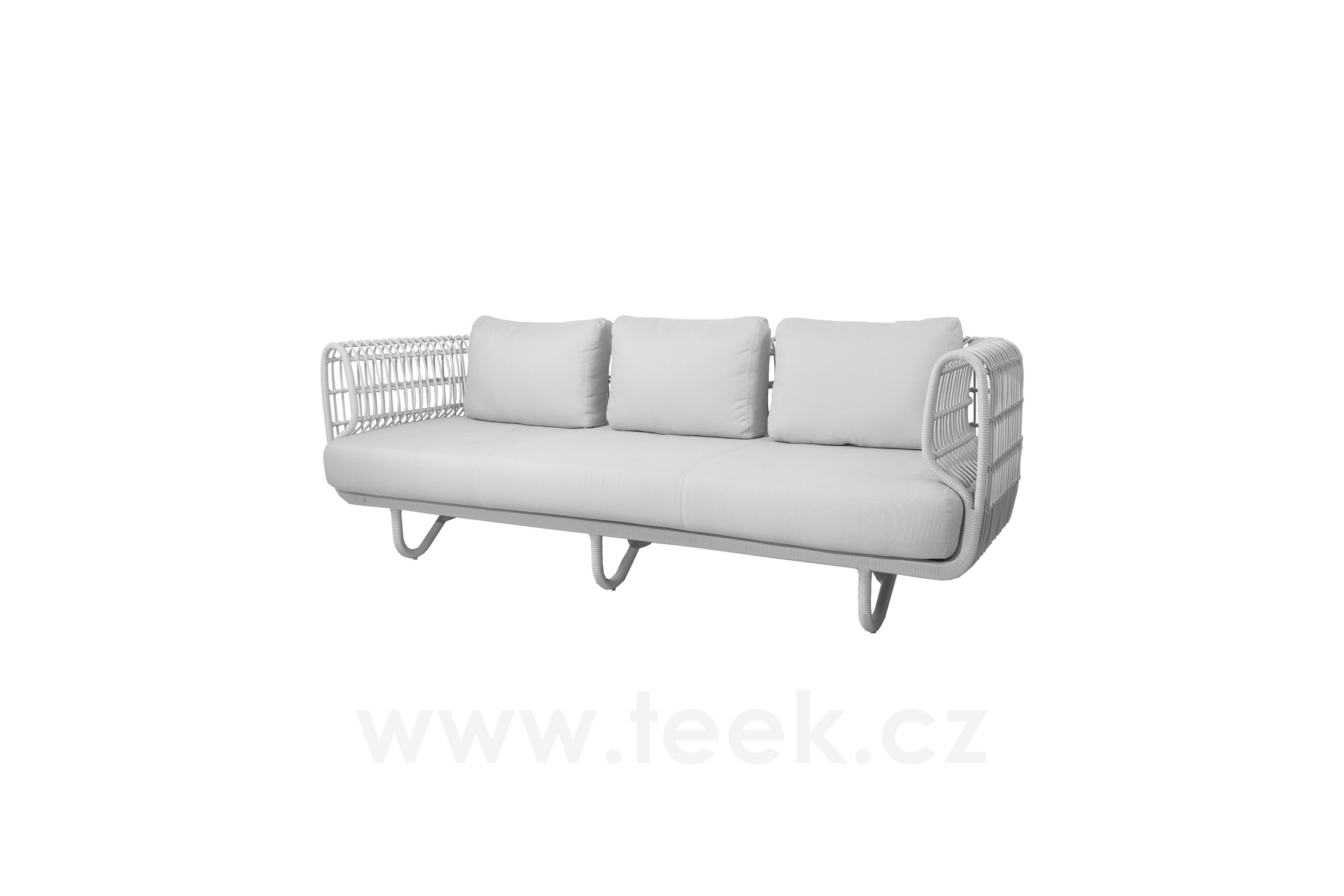 3-místná pohovka Nest, Cane-line, 227x90x74 cm, rám hliník, výplet umělý ratan barva white, sedáky venkovní látka Natté white