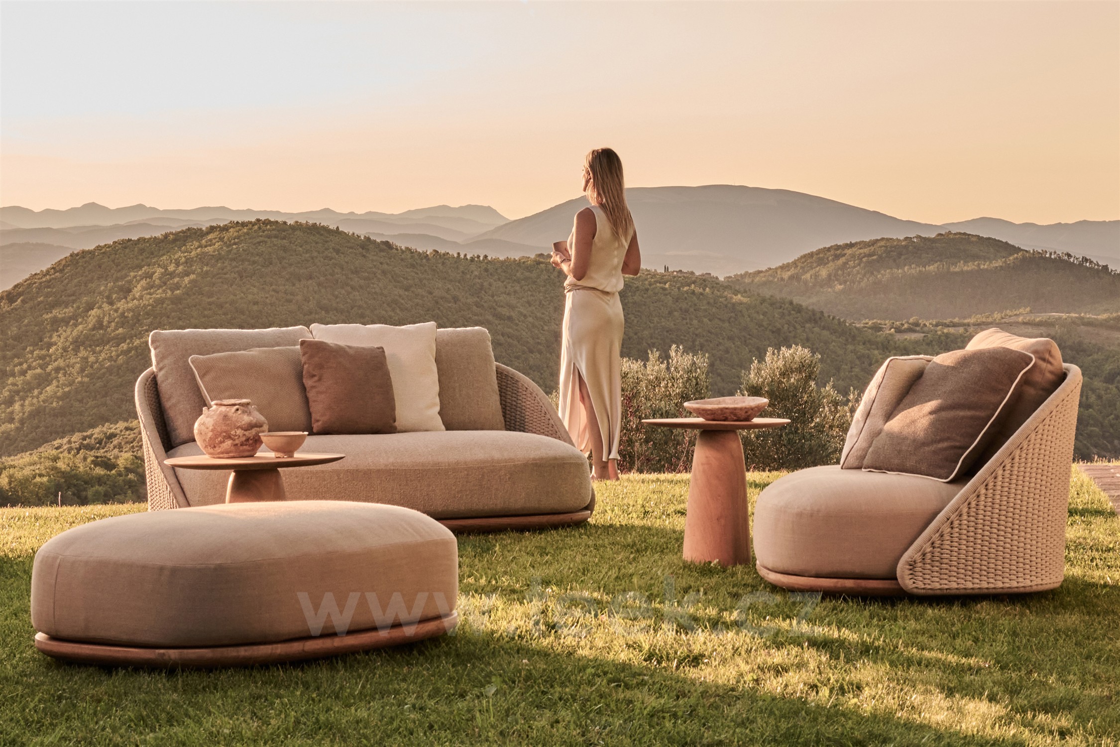 Pohovka 2-sed Elio Sofa, Tribu, 166 cm, teak, lankový výplet
