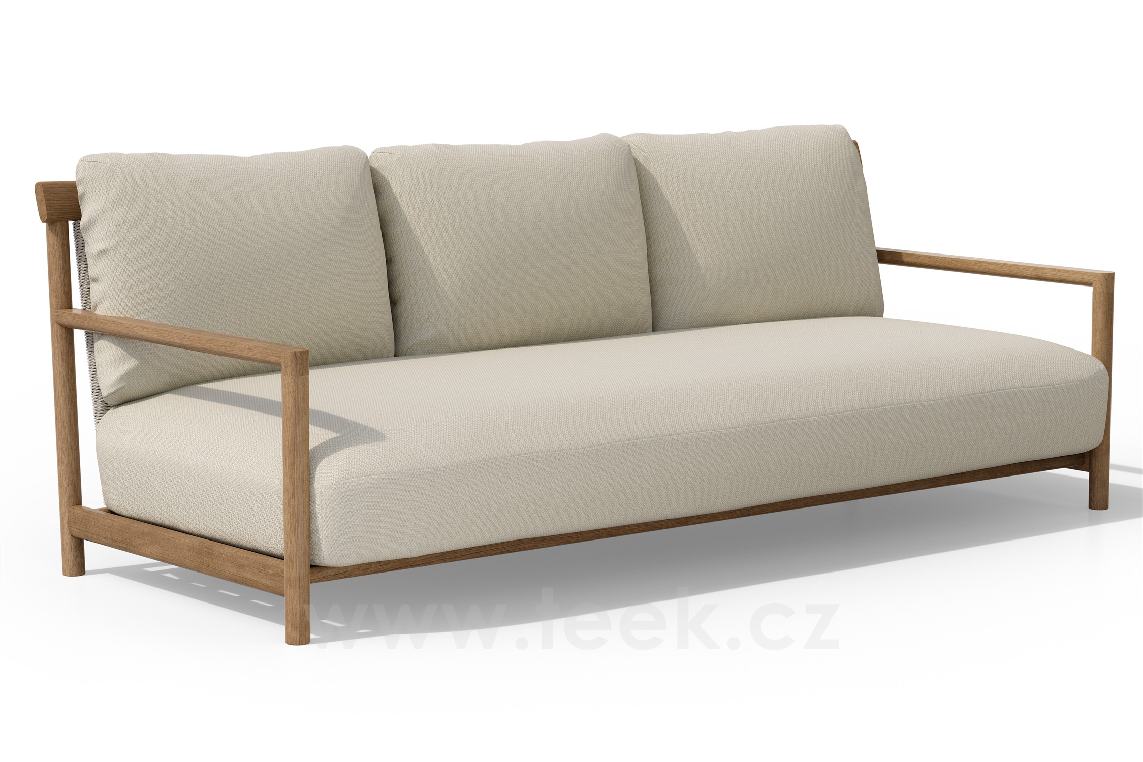 Venkovní 3-místná pohovka/sofa Amanu s rámem z teakového dřeva a lankovým výpletem.