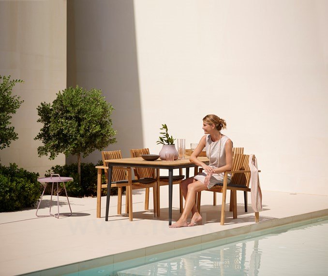 Jídelní stůl Core, Cane-line, obdélníkový 210x100 cm, hliník, teak