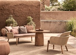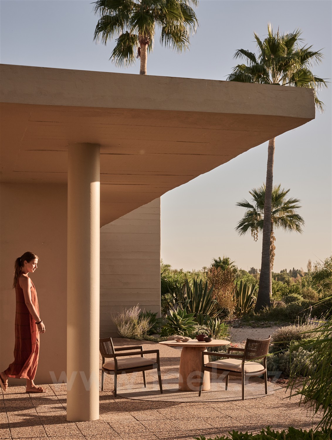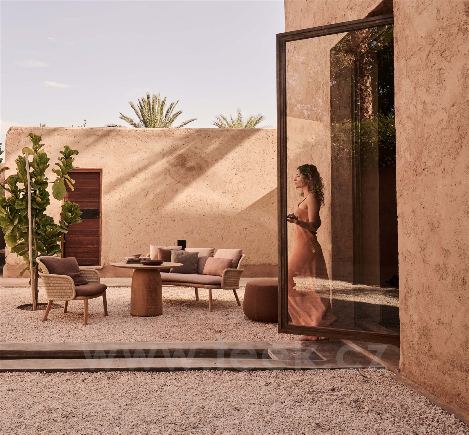 The Dunes low dining table by Tribu brings a relaxed, lowered profile to refined outdoor dining.
