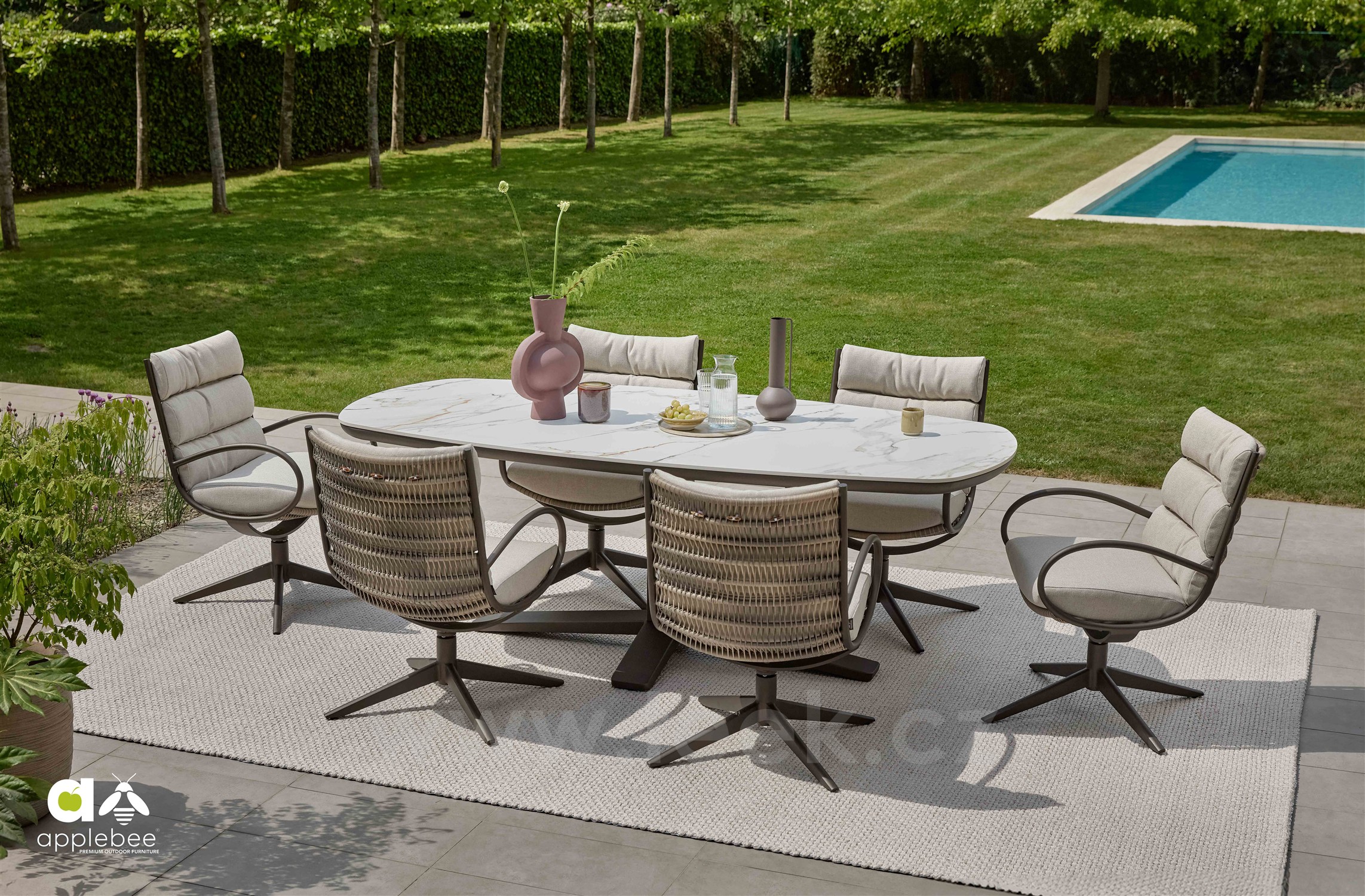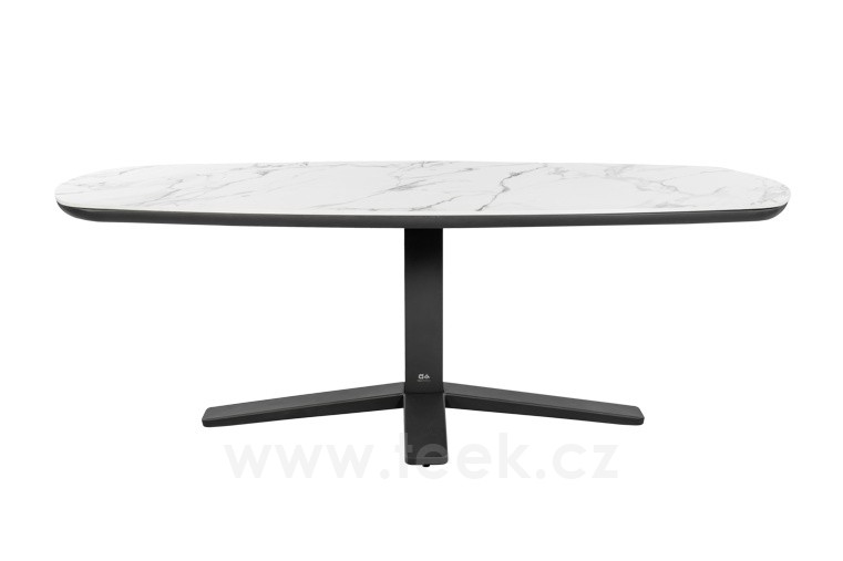 Oválný venkovní jídelní stůl Zanzibar od Apple Bee. Materiály: lakovaný hliníkový rám a kompozitní keramická deska.