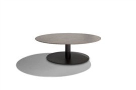 Konferenční stolek T-Table, Tribu, kulatý 80x35 cm, rám lakovaná nerez barva dark bronze, deska keramika dekor sabbia