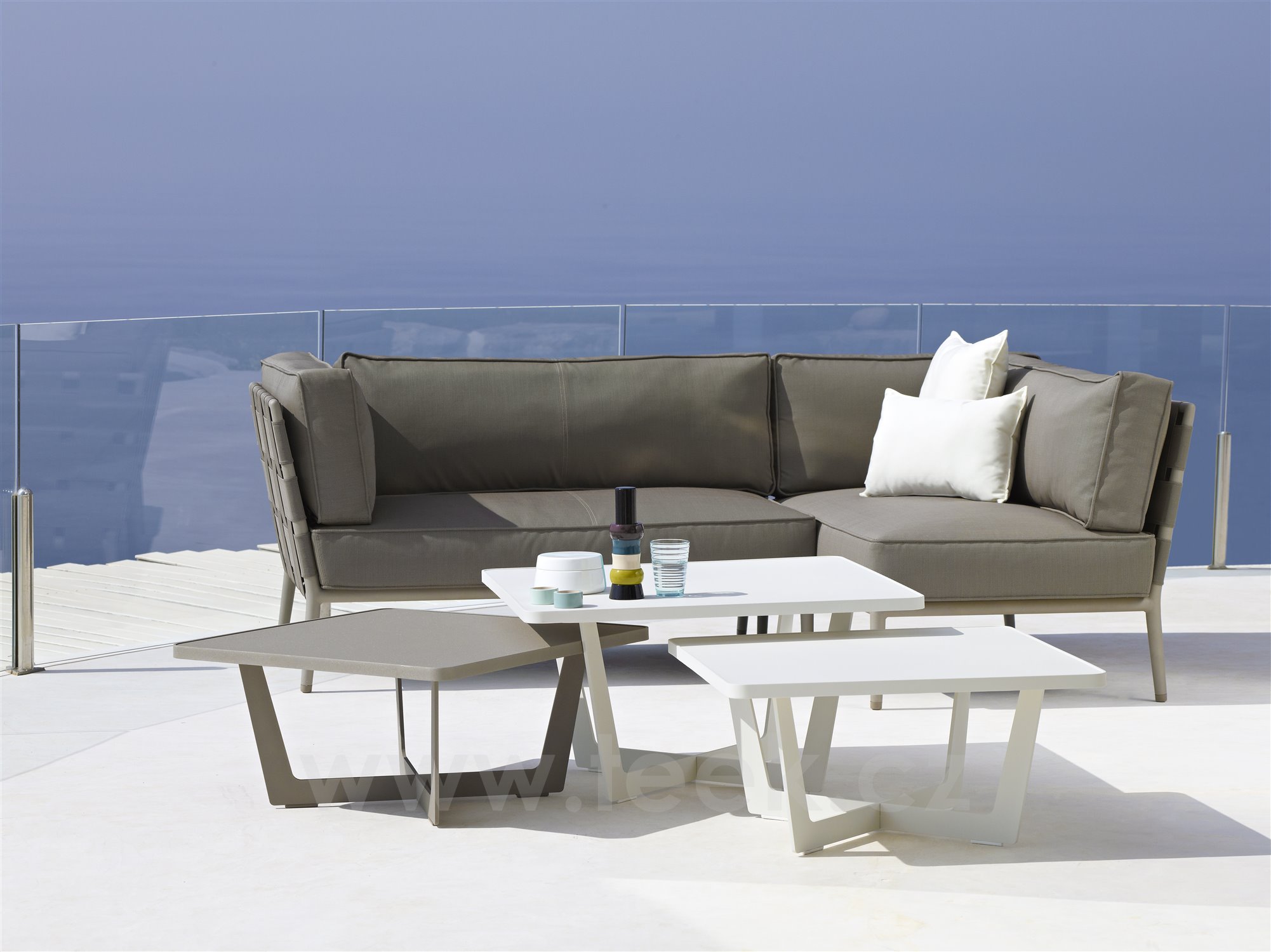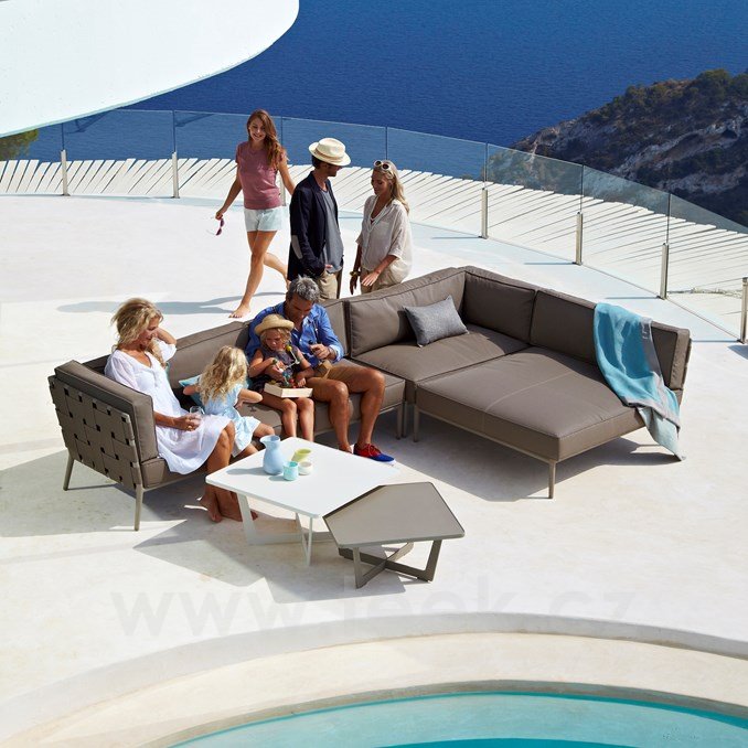 Hliníkový zahradní konferenční stolek kolekce Time-Out značky Cane-line. Stůl je celohliníkový. Barva: hnědo šedá (taupe), bílá (white), šedo černá (lava grey).