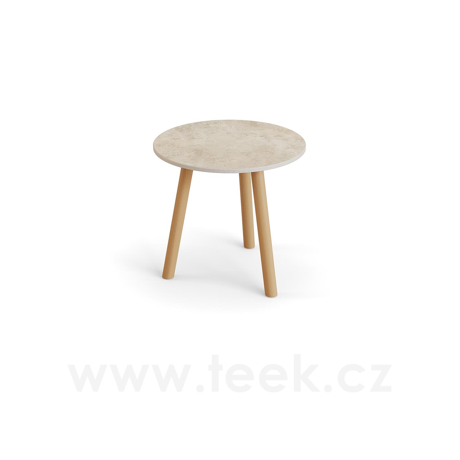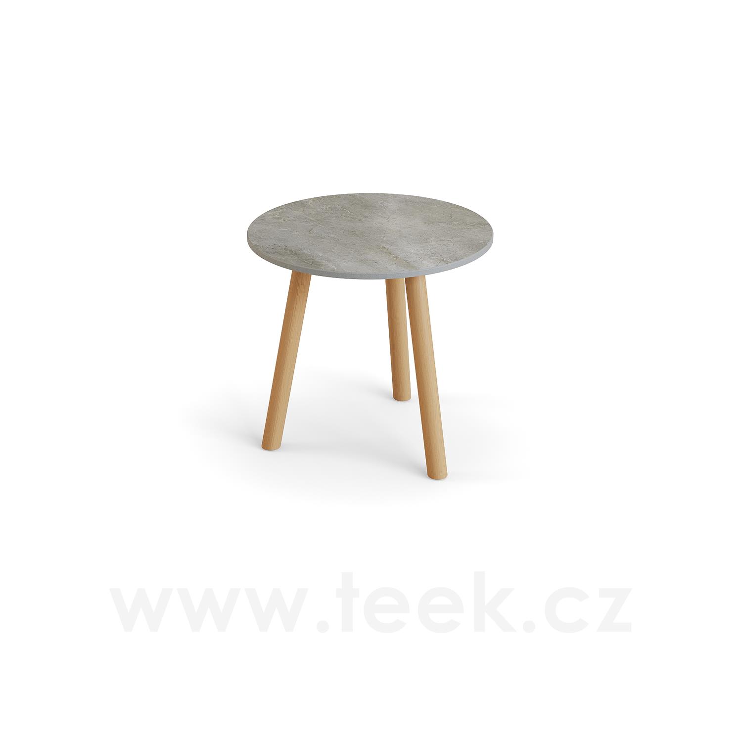 Odkládací stolek Ronda, Jati Kebon, kulatý 45x44,2 cm, rám teak, deska keramika 12mm dekor Paladium Grey
