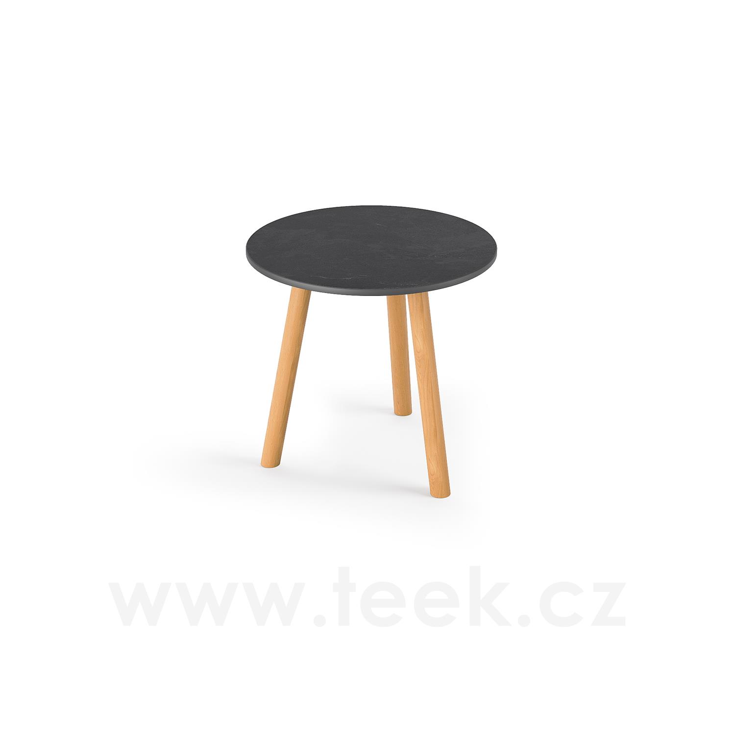 Odkládací stolek Ronda, Jati Kebon, kulatý 45x44,2 cm, rám teak, deska keramika 12mm dekor Slate Black