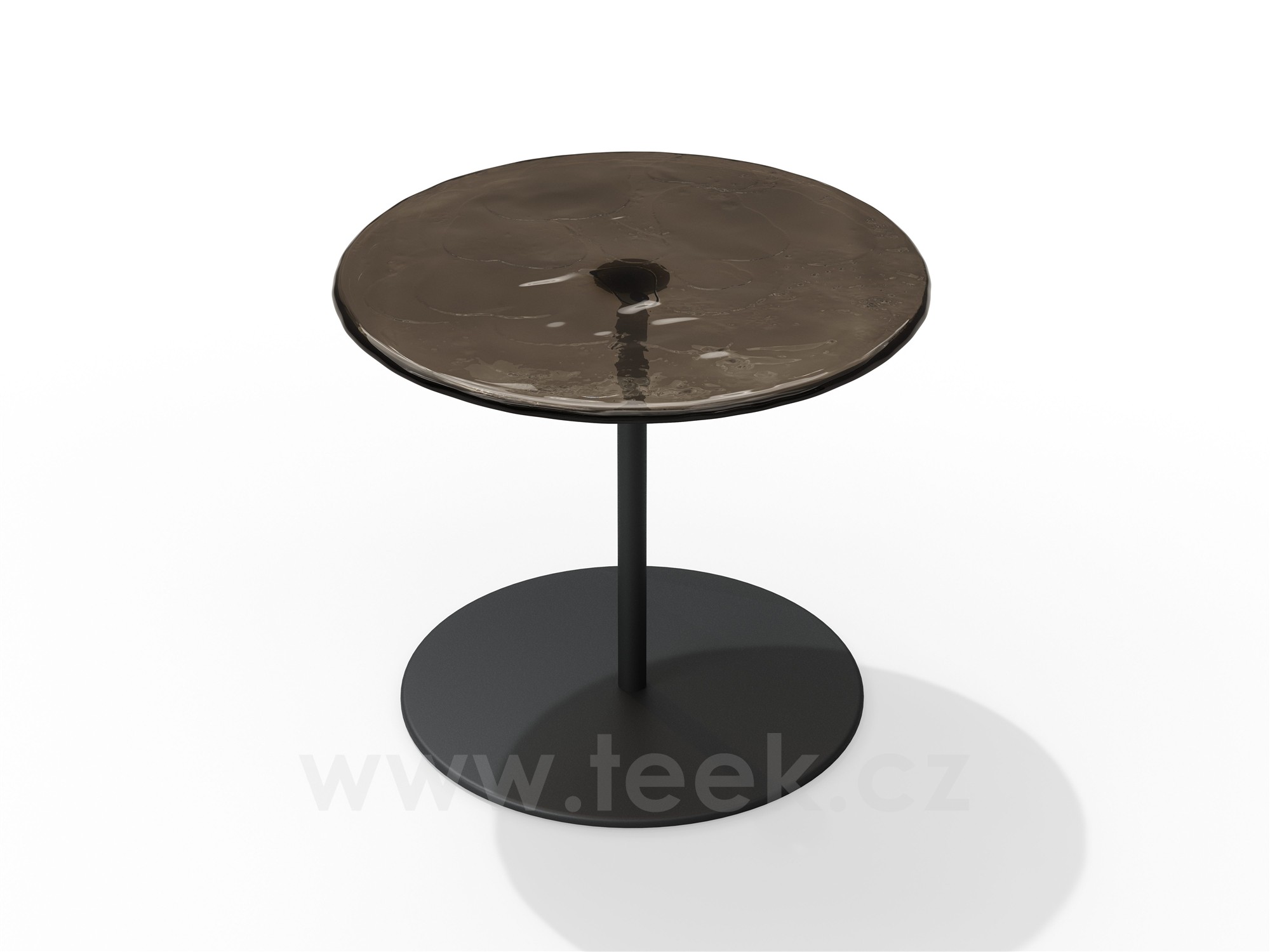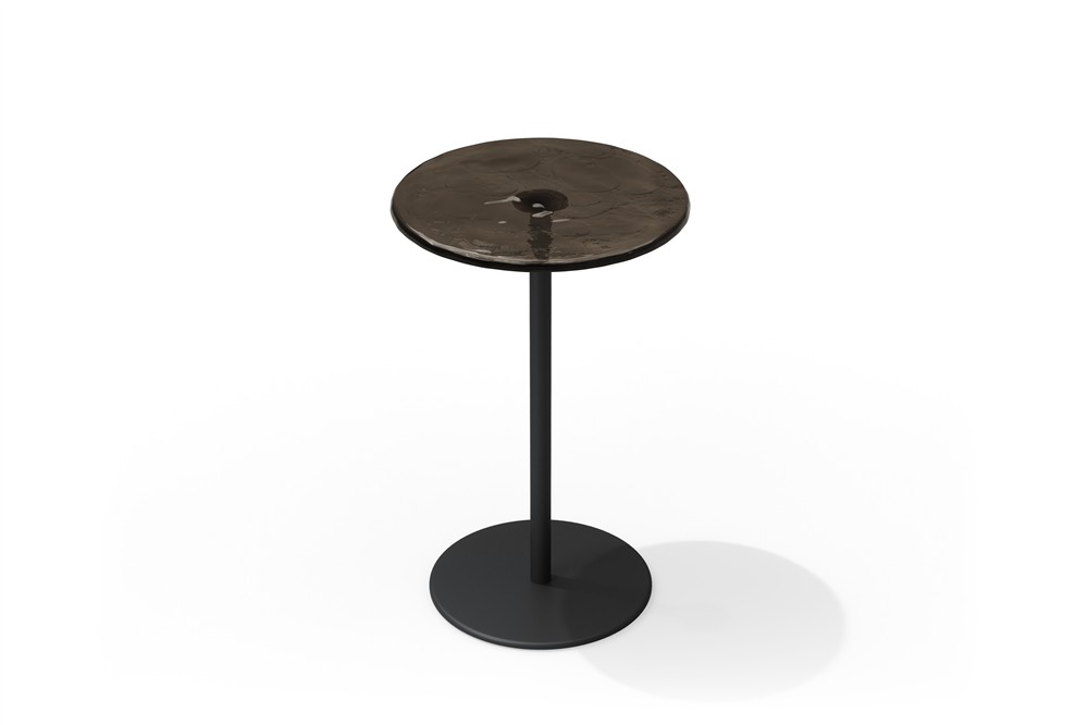 Odkládací stolek Mare, Tribu, kulatý 48 cm, výška nohou v balení 40 a 50 cm, rám hliník barva wenge, deska sklo barva amber