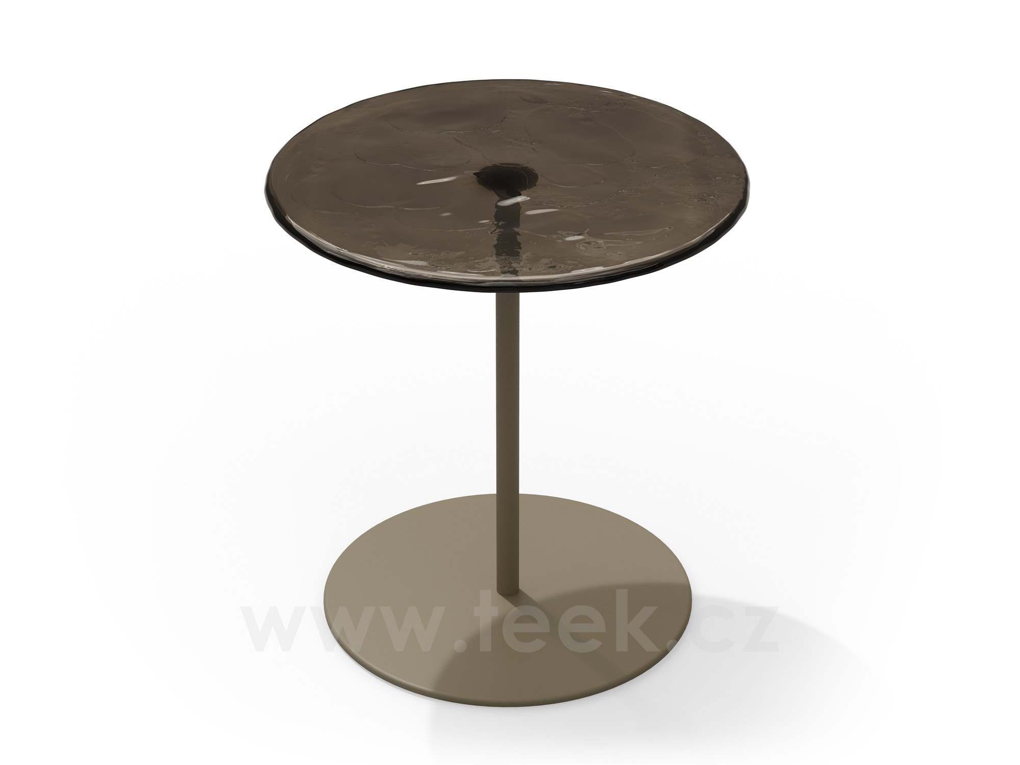 Odkládací stolek Mare, Tribu, kulatý 48 cm, výška nohou v balení 40 a 50 cm, rám hliník barva linen, deska sklo barva dusk