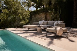 Venkovní odkládací - konferenční stolek Seren má podnož z lakovaného hliníku a desku z keramiky.