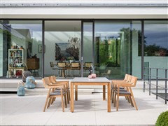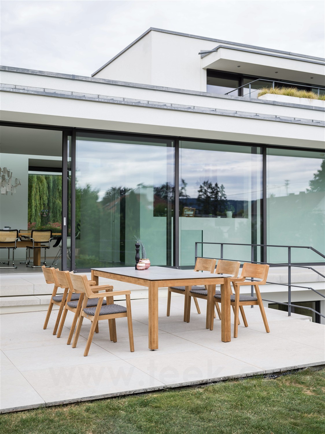 Jídelní stůl, Stern, obdélníkový 200x100x74 cm, rám teak, deska keramický kompozit Dekton sediment grey