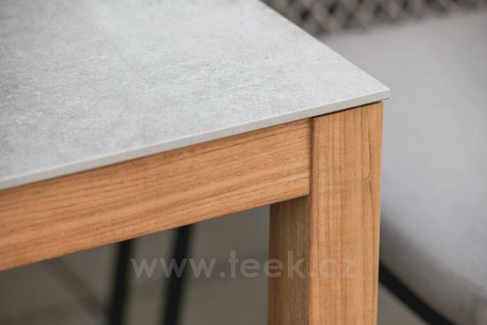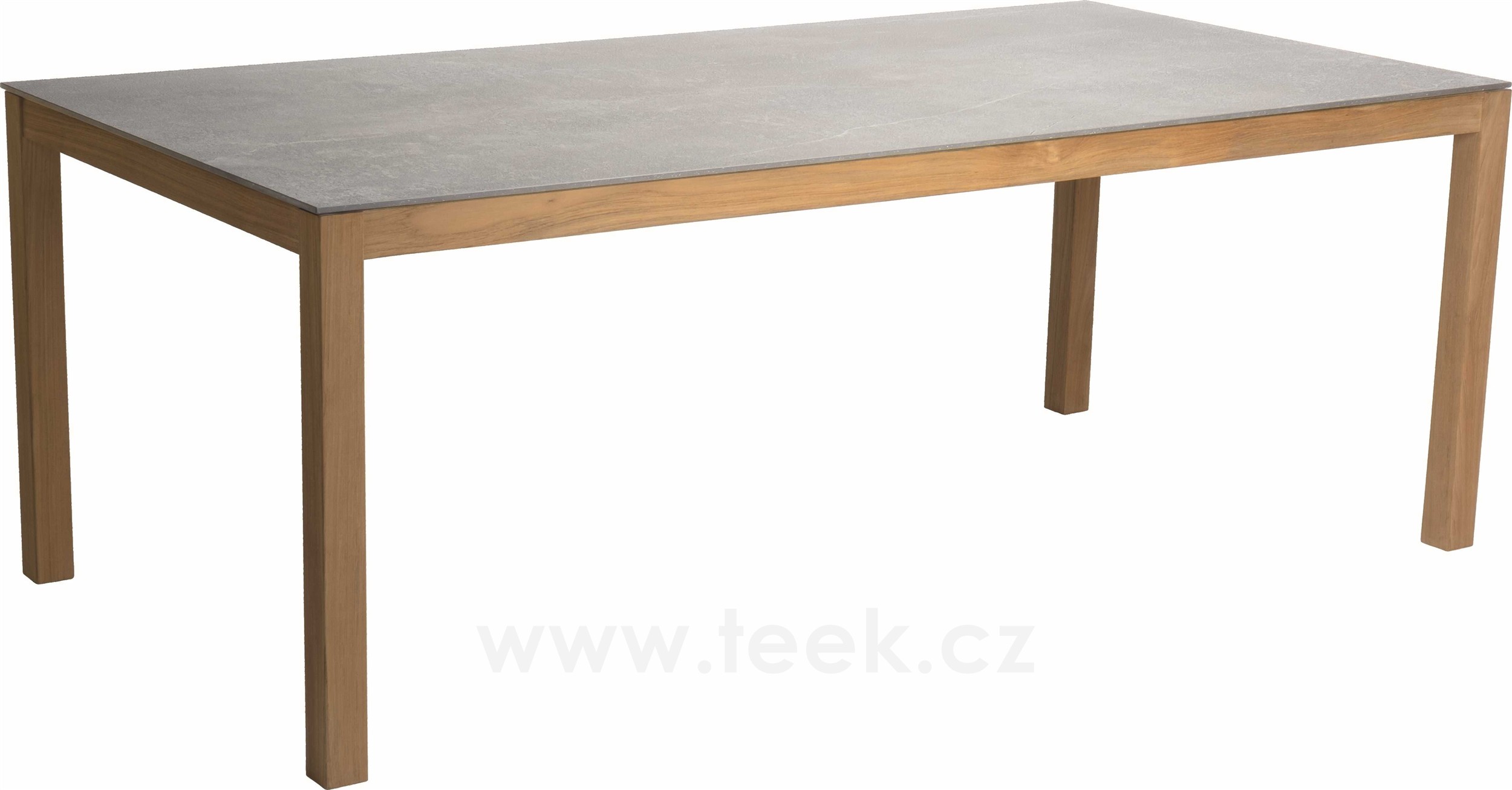 Jídelní stůl, Stern, obdélníkový 200x100x74 cm, rám teak, deska keramický kompozit Dekton lava light grey