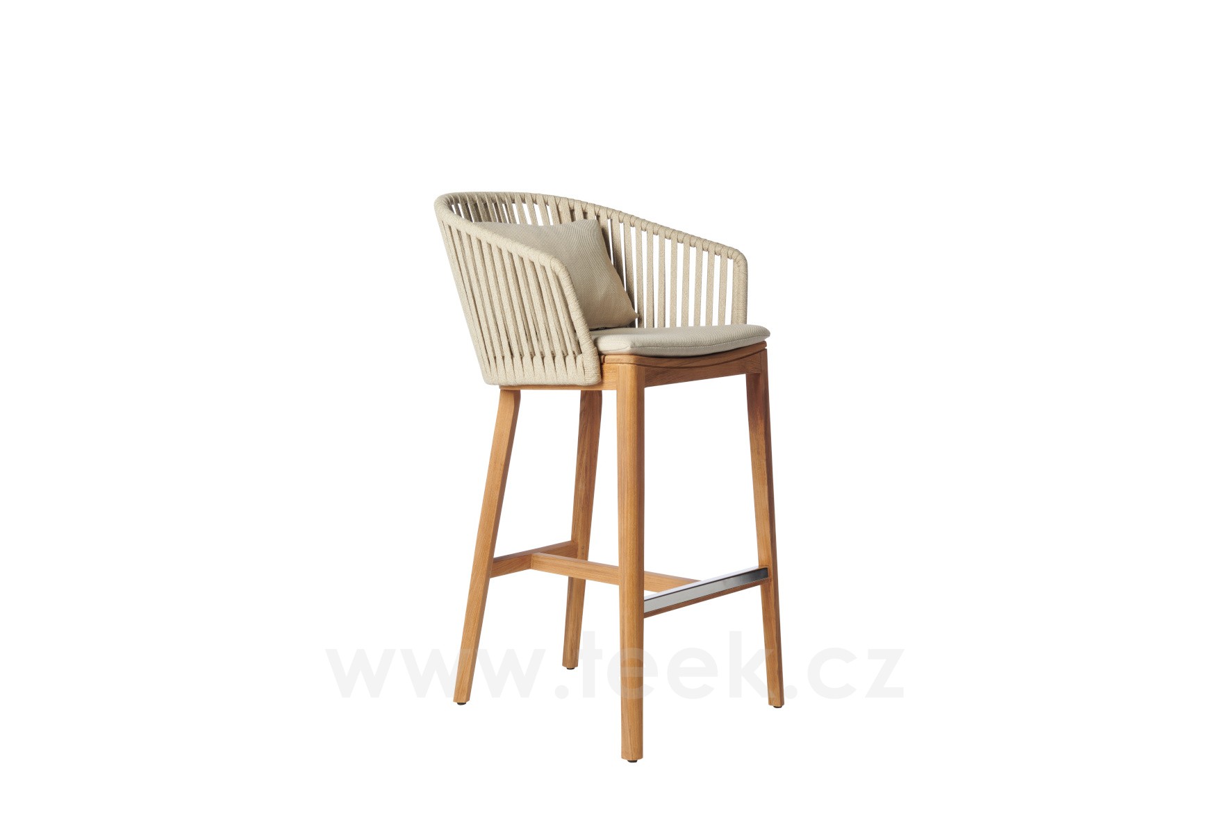Teakové barové křeslo Mood, Tribu, 62x60x108 cm, rám teak, výplet lanko barva linen, bez sedáků