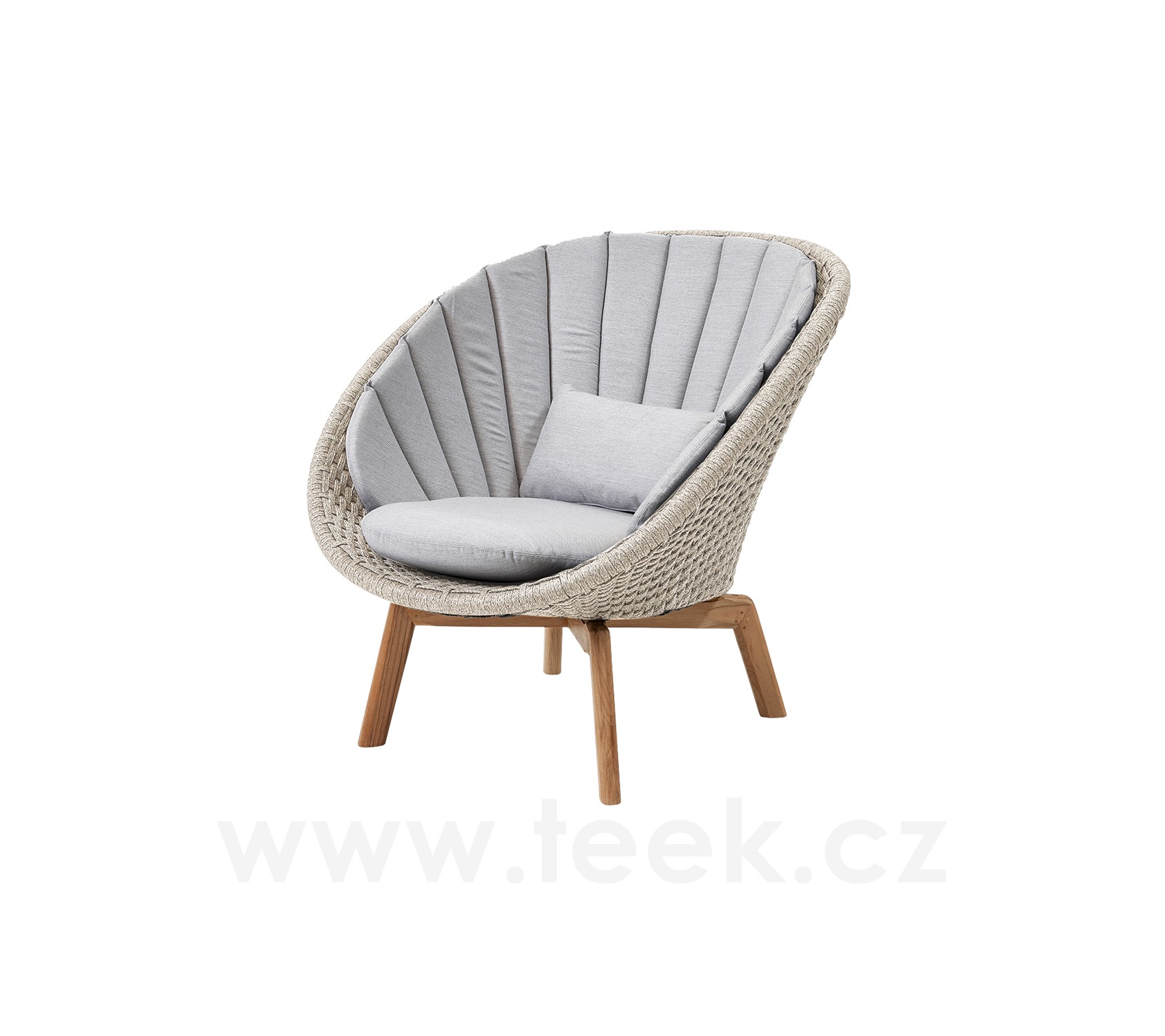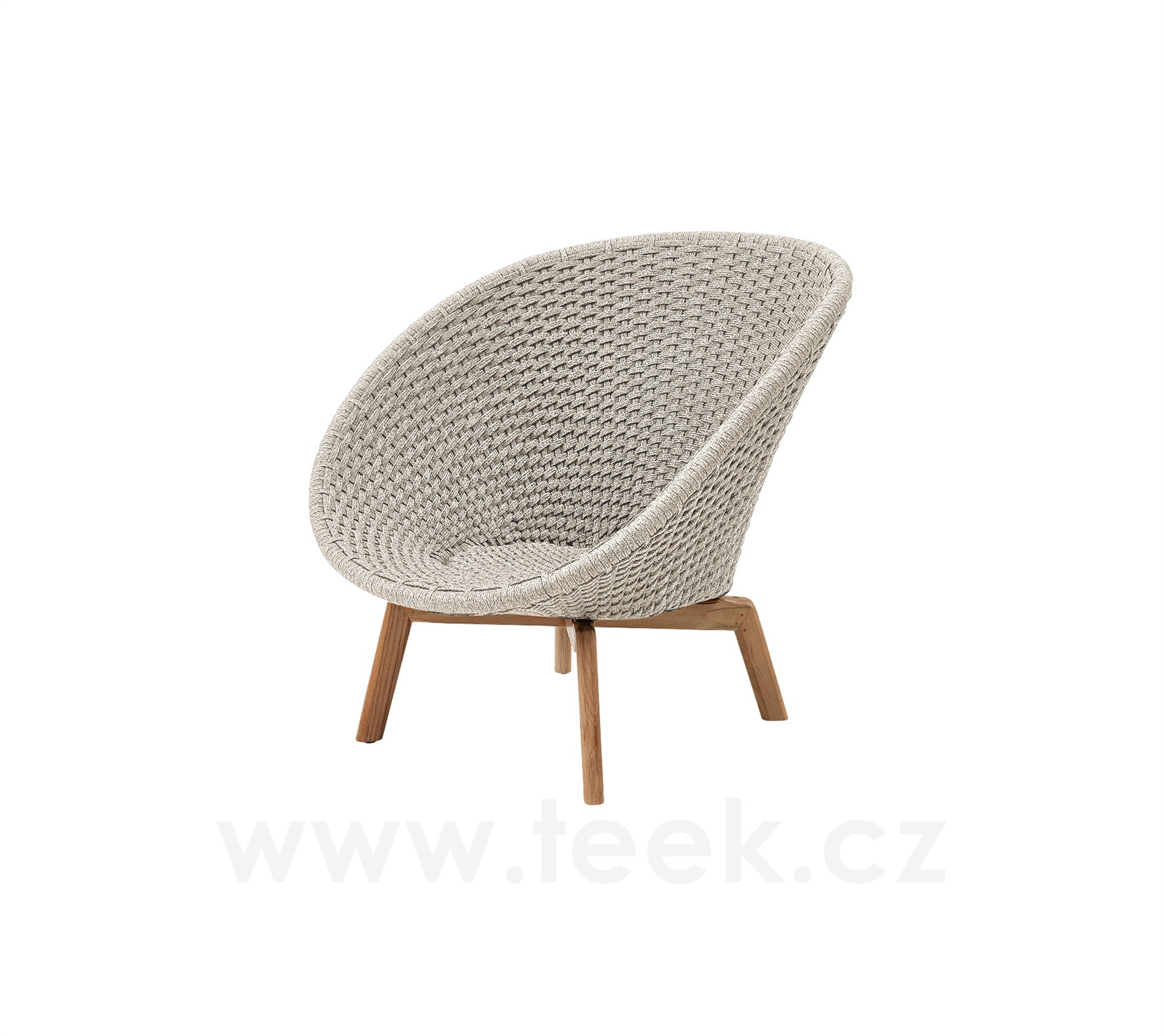 Nízké křeslo Peacock, Cane-line, 91x93x87 cm, nohy teak, rám hliník, výplet lanko Soft Rope sand, bez polstrů