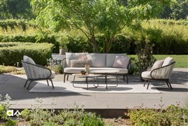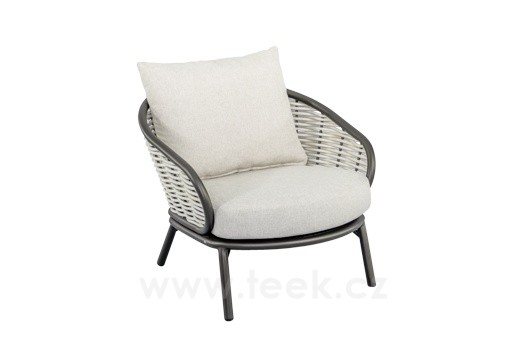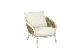Nízké křeslo Pine Key, Apple Bee, rám hliník Oyster (krémová), výplet umělý ratan Seashell, sedáky venkovní látka Cotton Flower